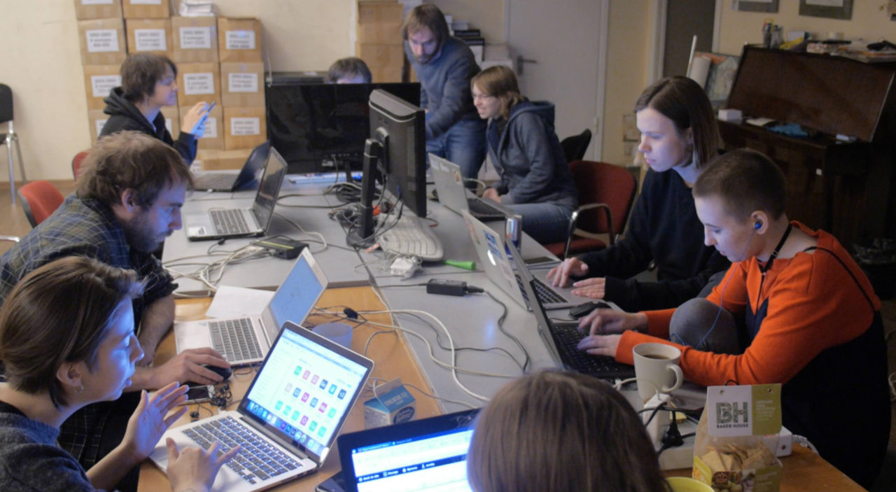 В штабе «ОВД-Инфо» (фото от 28.01.2018)Фото: предоставлено ОВД-Инфо Руководитель группы выпуска даже не успевает записывать, какие зарубежные каналы звонят ему, чтобы получить последнюю независимую информацию.