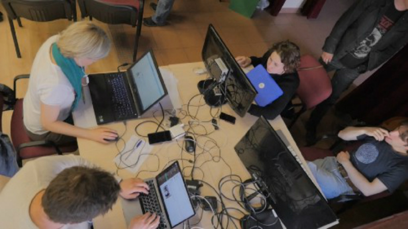 Отрывая куски бумажного скотча, ребята делают себе бейджики: пишут на скотче волшебное слово «техник» и клеят на грудь или на спину. Каждый волонтер должен быстро, не тратя драгоценное время звонка, сориентироваться и «выцеплять» из окружения людей, умеющих настроить комп и устранить ту или иную неполадку. Сеть то и дело падает, поэтому действовать нужно оперативно. И техники с липучими бейджами заняты постоянно.