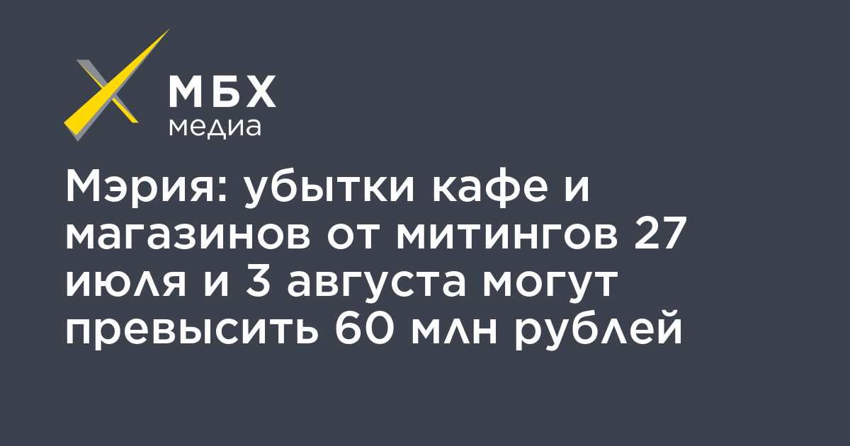 Убытки кафе и магазинов от митингов 27 июля и 3 августа могут превысить 60 млн рублей. Такую оценку приводит ТАСС со ссылкой на источник в московской мэрии.