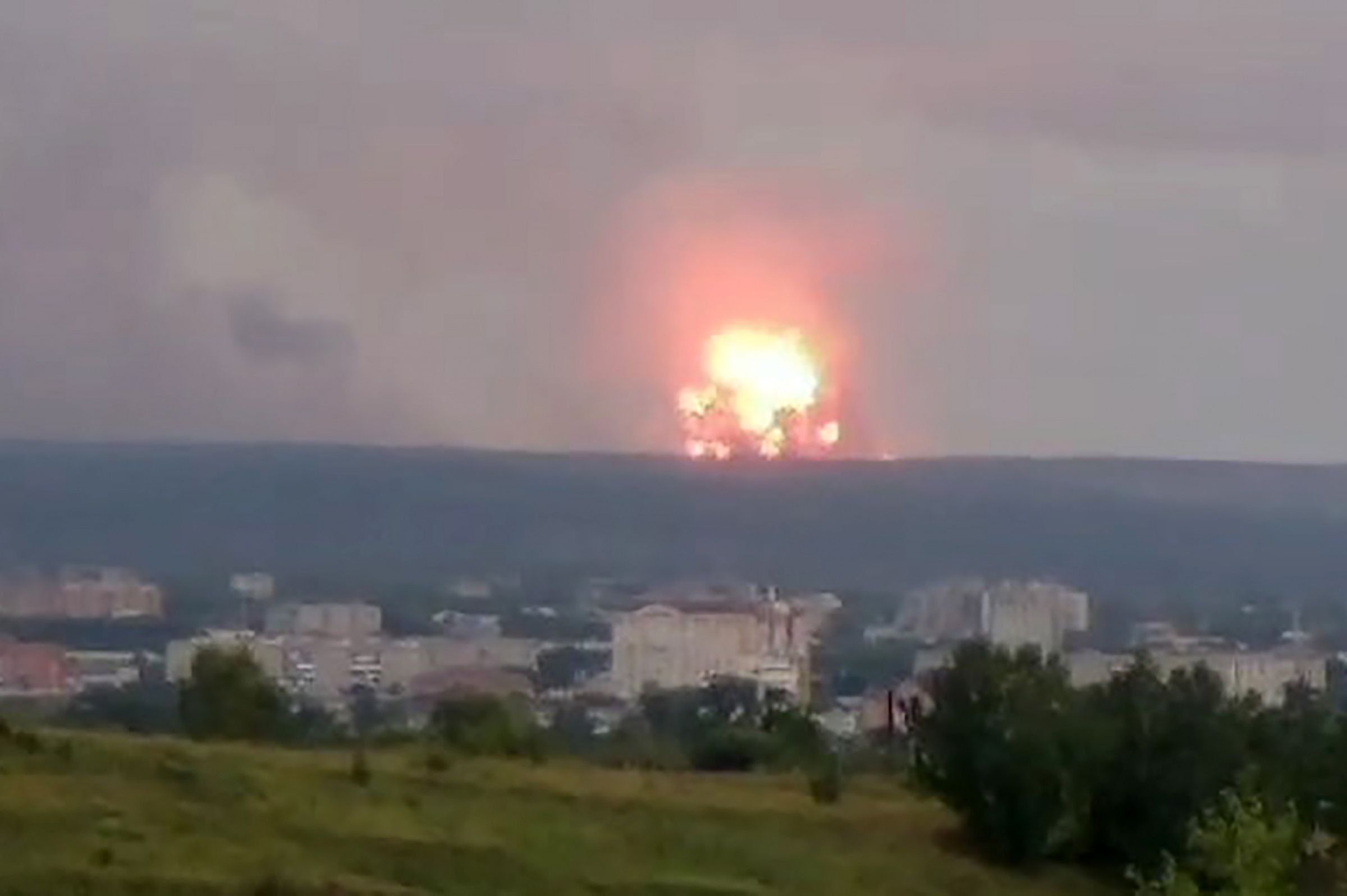 По информации источника ТАСС, пожар охватил две площадки по утилизации, на которых находились 25 тысяч боеприпасов. По другим данным, на складе хранили 40 тысяч боеприпасов. Источник агентства утверждает, что осколки взрывающихся снарядов разлетаются в радиусе 15 километров.