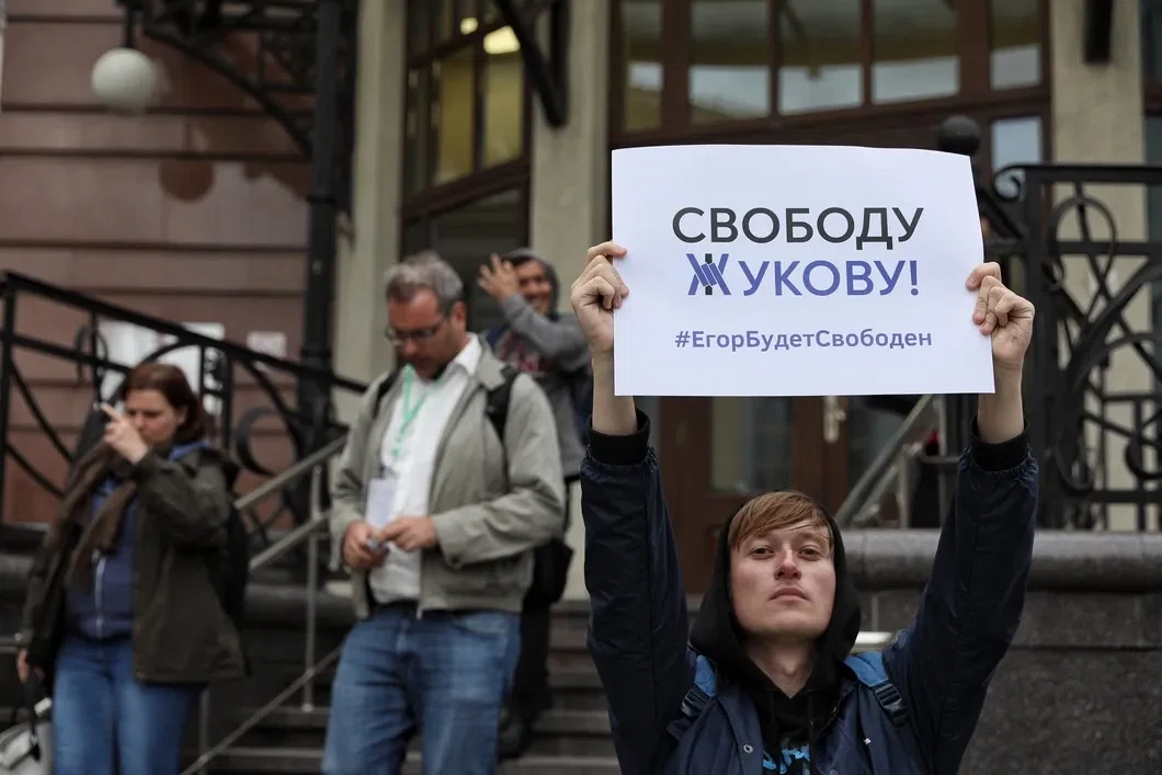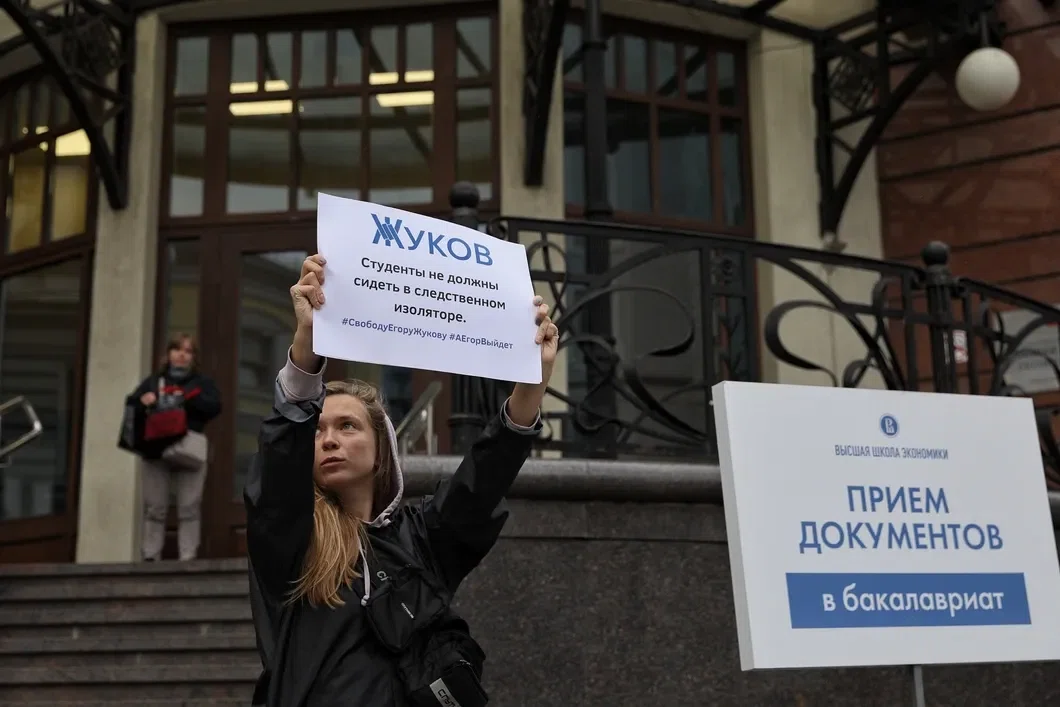 У здания Высшей школы экономики на Мясницкой улице проходят пикеты в поддержку студента вуза Егора Жукова, обвиняемого по ч. 2 ст. 212 УК — участие в массовых беспорядках в центре Москвы 27 июля. Он один из фигурантов дела по 212 и 318 статьям УК, ставших результатом акции с требованием допуска оппозиционных кандидатов до выборов в Мосгордуму.