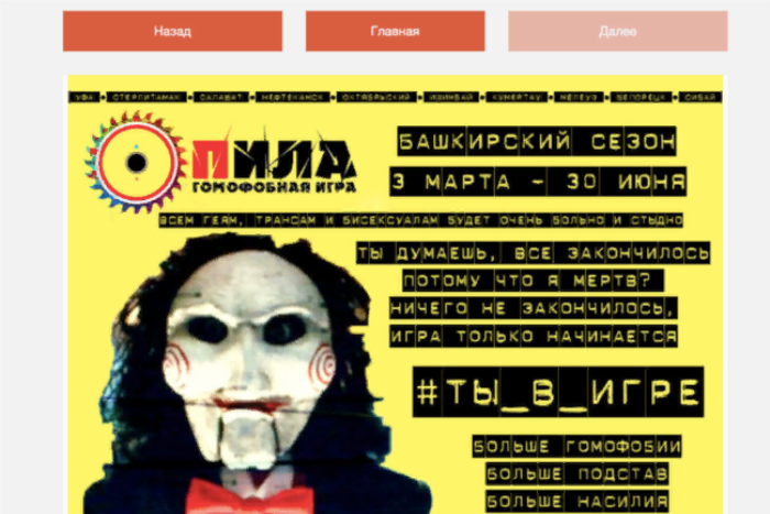 Московский Центр «Э» не смог найти создателей «Пилы против ЛГБТ». Потому что сайт движения заблокирован Роскомнадзором