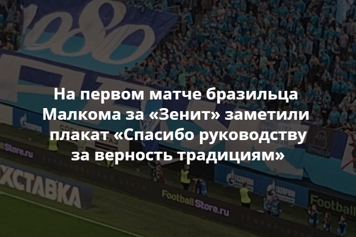 Зарубежные СМИ обвинили фанатов «Зенита» в расизме из-за плаката «Спасибо руководству за верность традициям», вывешенного в дебютном матче бразильца Малкома за «Зенит». Среди изданий, написавших об этом, — британское The Sun, испанское AS и французское L’Equipe.