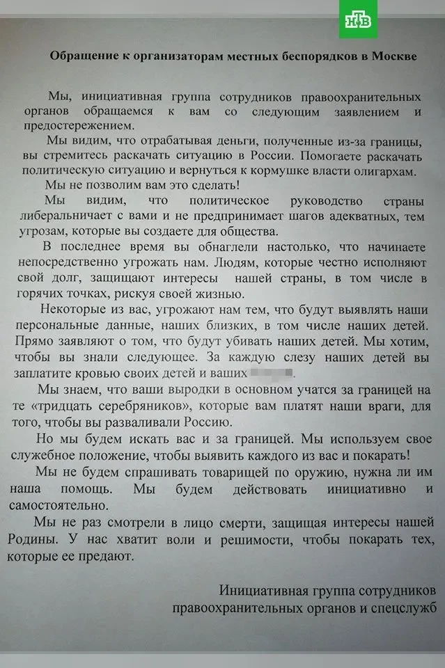 Это типичный пример манипуляции, к которому мы привыкли за последние годы благодаря российскому телевидению, и на него, скорее всего, не стоило бы обращать внимания. Если бы его частью не стала публикация как бы документа, исходящего якобы от «анонимной группы сотрудников силовых структур».