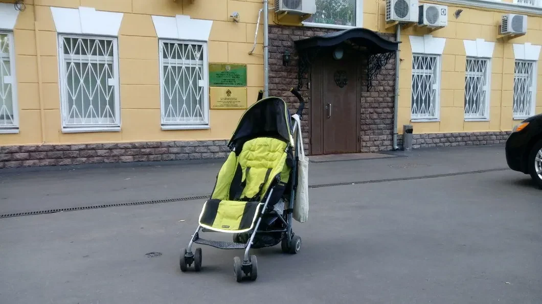 Коляска Артема Проказова (1 год) у прокуратуры ЦАО. Фото дня