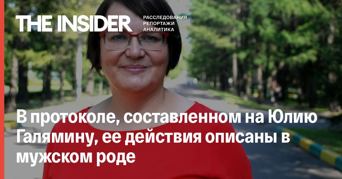 Сотрудники полиции составили на муниципального депутата и незарегистрированного кандидата в депутаты Мосгордумы Юлию Галямину протокол, в котором все ее действия описаны в мужском роде. Копию документа опубликовало «МБХ медиа».