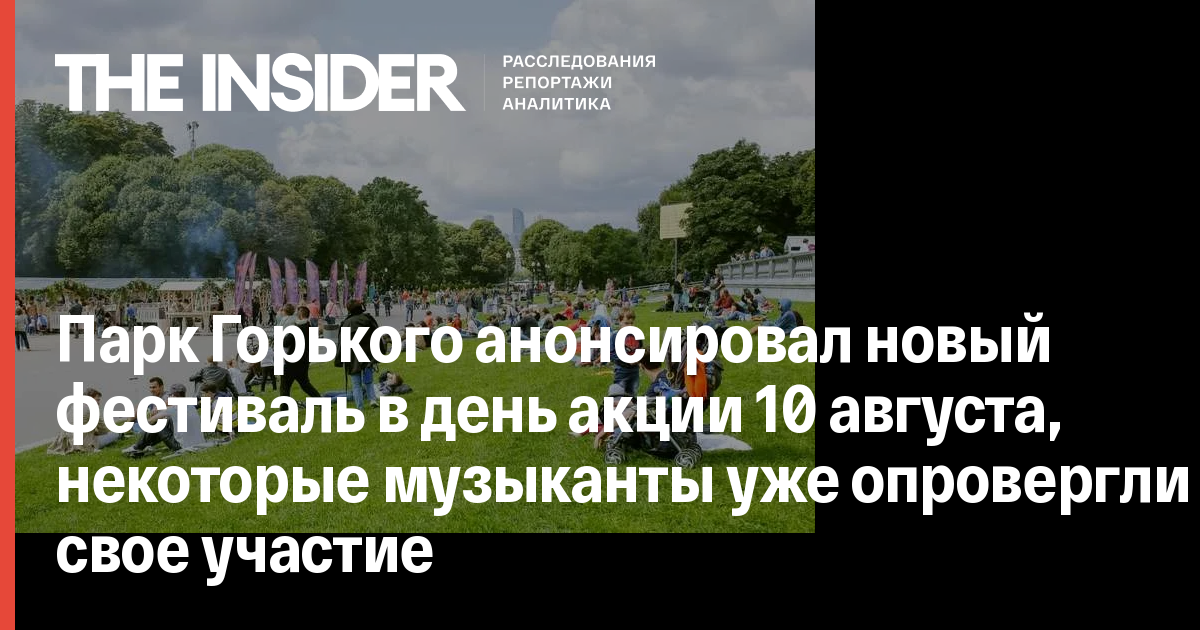 Парк Горького анонсировал новый фестиваль в день акции 10 августа, некоторые музыканты уже опровергли свое участие