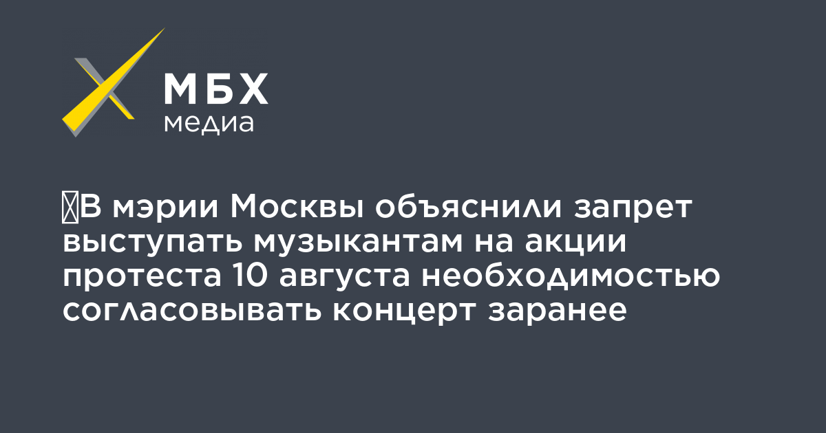 В мэрии Москвы объяснили запрет выступать музыкантам на акции протеста 10 августа необходимостью согласовывать концерт заранее
