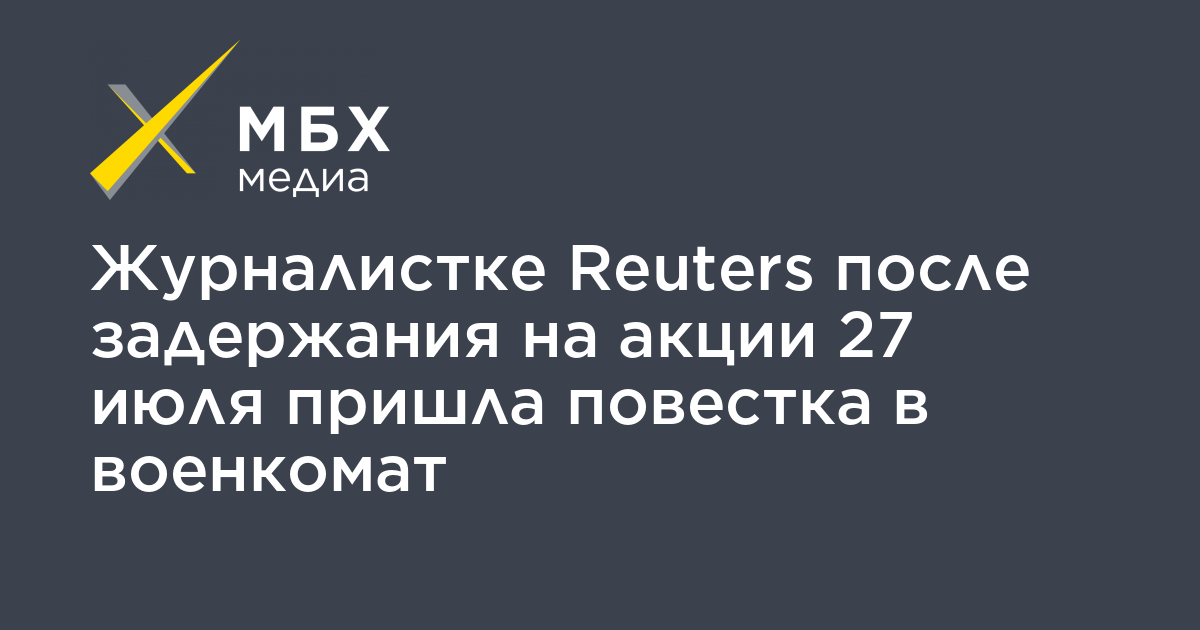 Журналистке Reuters после задержания на акции 27 июля пришла повестка в военкомат
