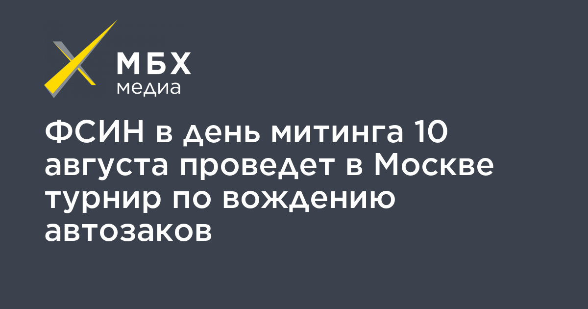 ФСИН России 10 августа проведет в Москве турнир по вождению автозаков, сообщает ТАСС со ссылкой на пресс-службу городского управления ведомства. На этот же день назначен согласованный митинг за свободные выборы на проспекте Сахарова.
