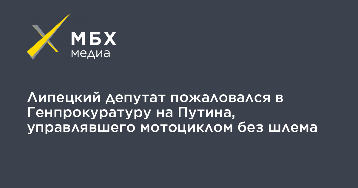 Депутат Липецкого областного совета Олег Хомутинников направил запрос в Генпрокуратуру с требованием проверить тот факт, что президент Владимир Путин 10 августа в Севастополе управлял мотоциклом без шлема. Об этом депутат сообщил “МБХ медиа”.