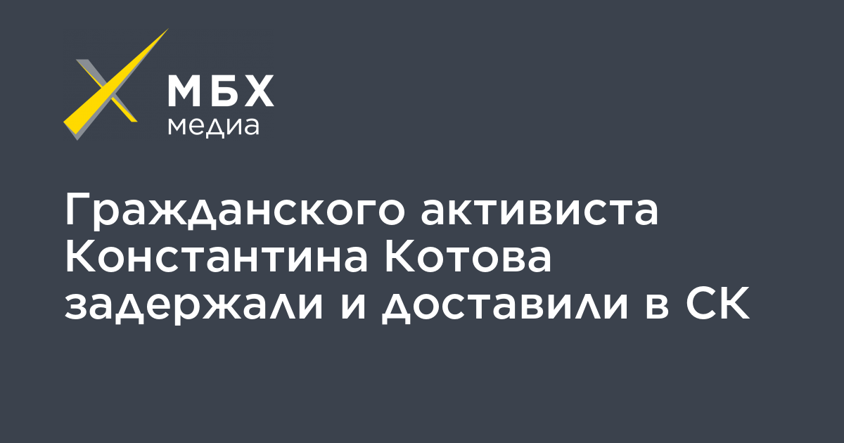 Силовики задержали гражданского активиста Константина Котова и доставили его в Следственный комитет, сообщила «МБХ медиа» адвокат Мария Эйсмонт.