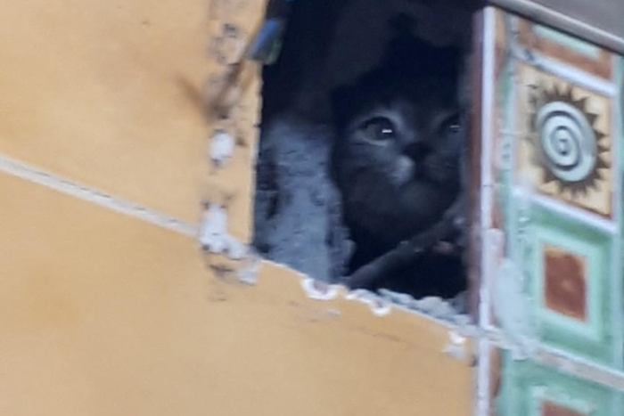После демонтажа кота стали выманивать с помощью корма. Волонтеры опасались, что он может испугаться и убежать в другую часть вентиляционной шахты. В итоге его поймали, хотя животное сопротивлялось.