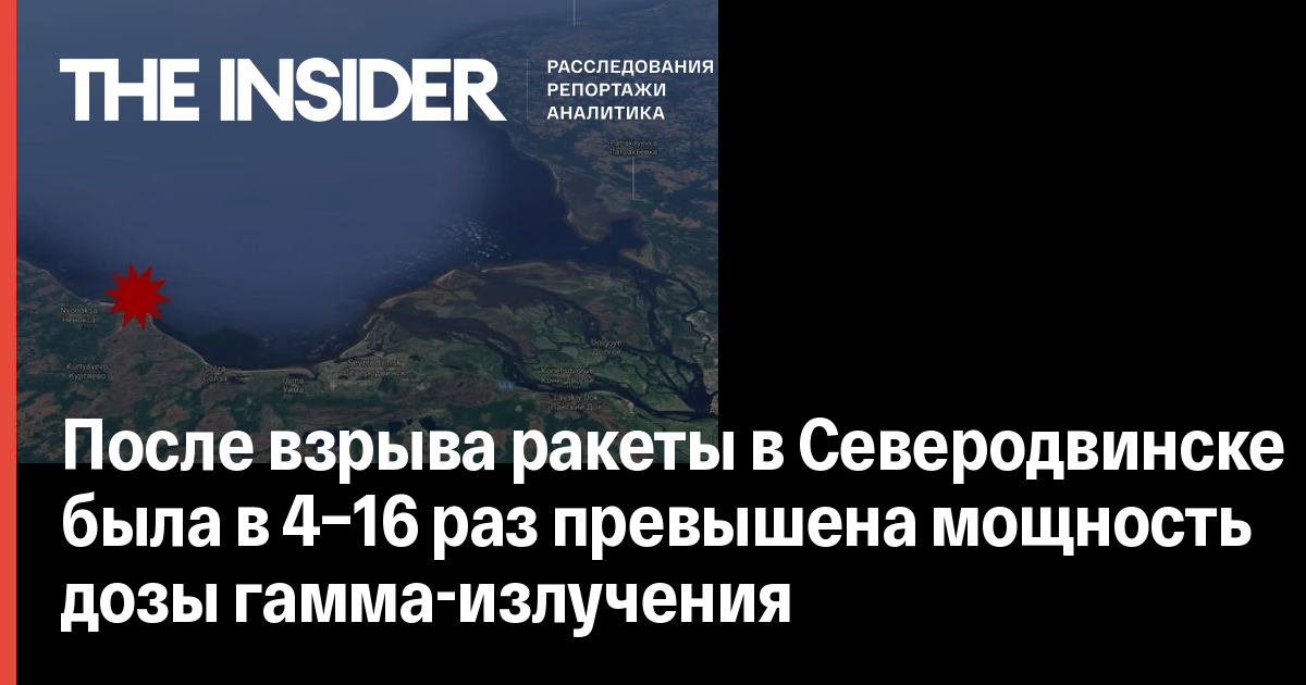 Напомним, на следующий день после взрыва администрация Северодвинска сообщила, что в городе произошел кратковременный радиоактивный скачок. Согласно сообщению властей на официальном сайте города, повышение радиационного фона было двукратным и длилось не более часа. Позже это сообщение было удалено.