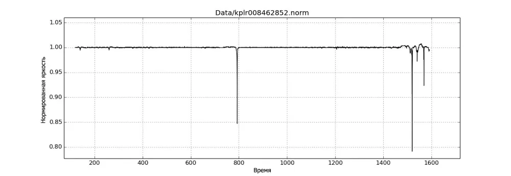 В дополнение полезно привести данные по самой Табби, благо их качество поразительно, спасибо «Кеплеру». Рис. 2, 3, 4 сделаны автором заметки на основе данных «Кеплера». На рис. 1 — данные за весь период наблюдений. Бросаются в глаза два глубоких провала (дипа) в районе 800-го дня и серия провалов в интервале 1500–1600 дней.