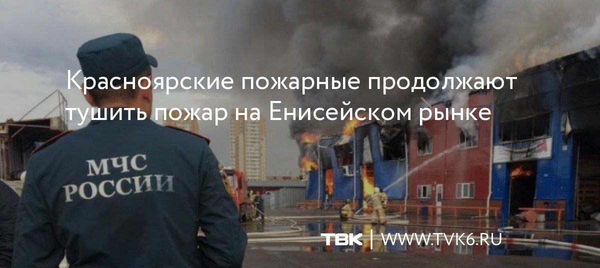 Красноярские пожарные продолжают тушить пожар на Енисейском рынке