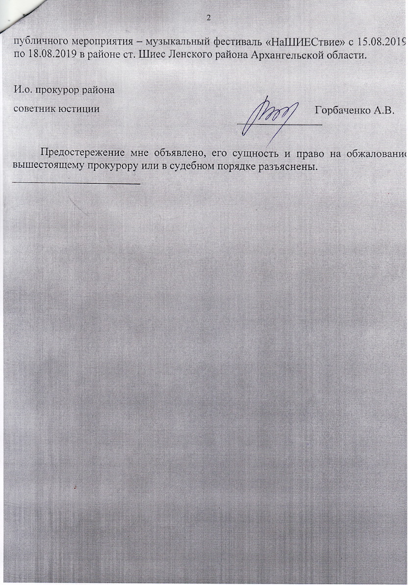 Прокуратура Архангельской области вынесла предостережение о недопустимости нарушения закона организаторам музыкального фестиваля «НаШИЕСтвие» возле станции Шиес, где продолжаются протесты против мусорного полигона.