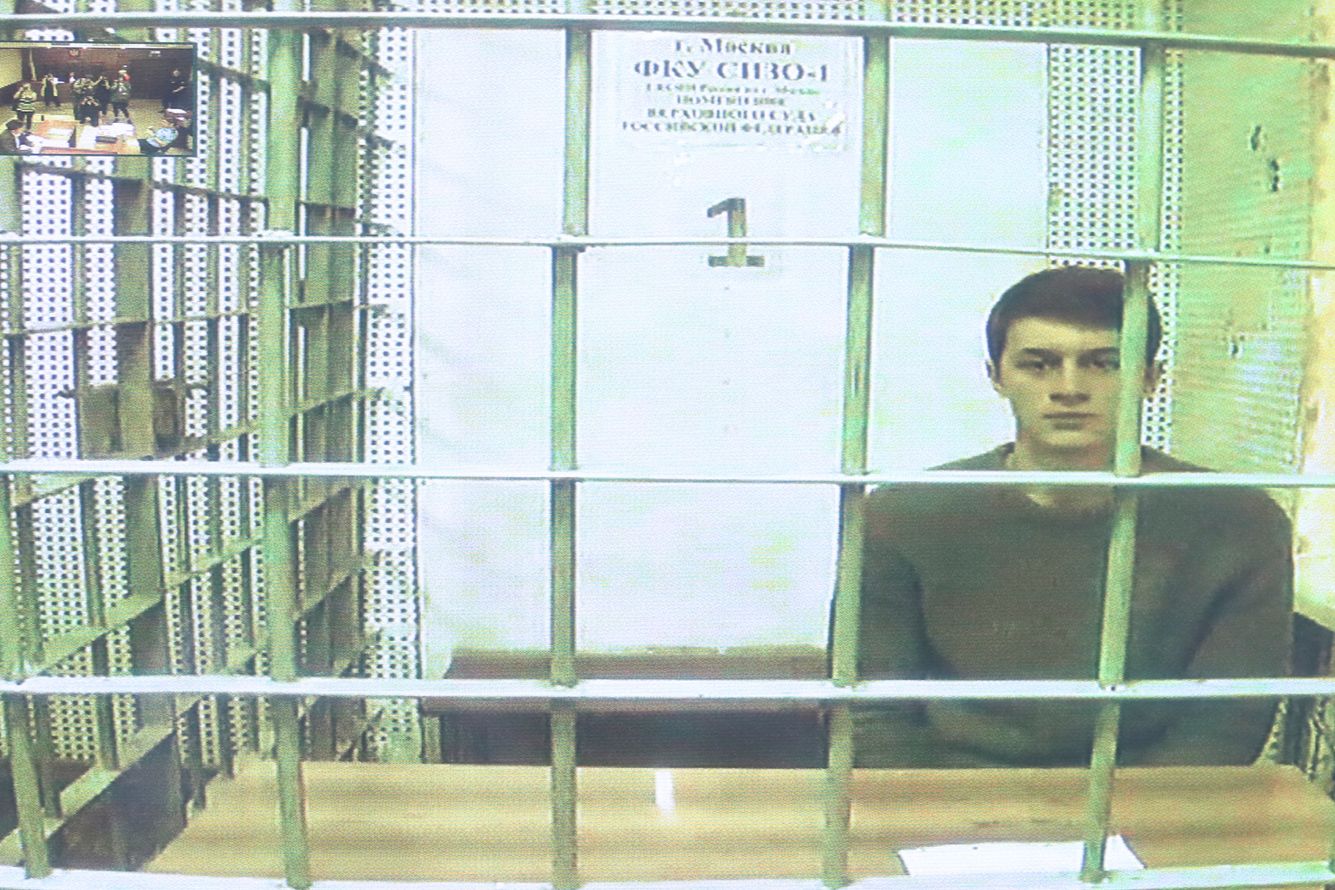 Егор Жуков на заседании суда 15 августа 2019 года. Жуков принимал участие в заседании по видеосвязи