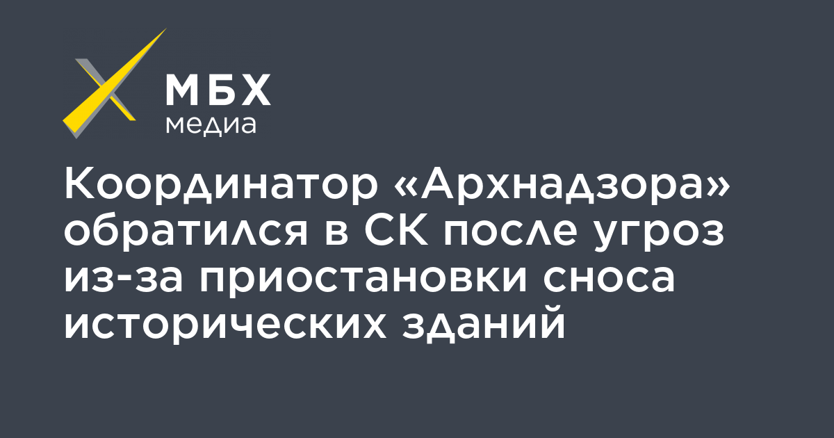 Координатор «Архнадзора» обратился в СК после угроз из-за приостановки сноса исторических зданий