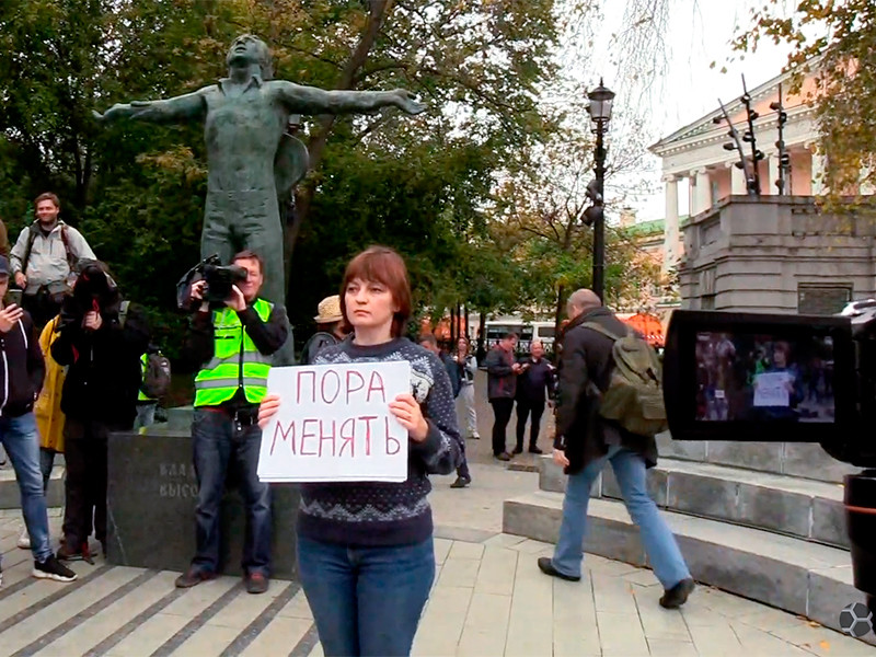 Одиночный пикет рядом с памятником Высоцкому. Фото: "МБХ медиа" pic.twitter.com/phOSsh6Dzu