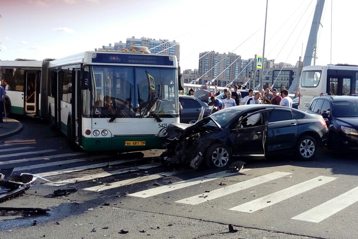 Днем 17 августа на пересечении проспекта Героев и улицы Маршала Захарова столкнулись пять легковых автомобилей и пассажирский автобус.