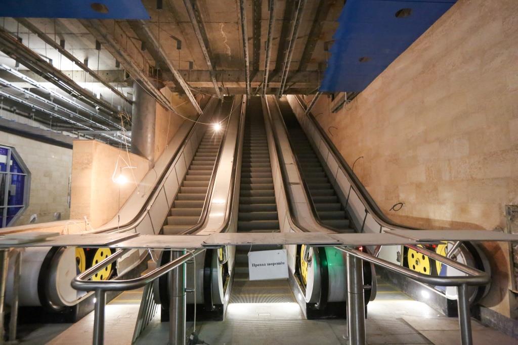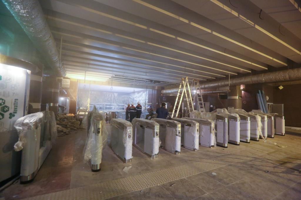 Внутри также завершена облицовка вестибюлей и подземных залов, работает архитектурное освещение, устанавливаются турникеты. На следующей неделе там будут монтировать кассы. Снаружи благоустраивают территорию: например, обещают ремонт Бухарестской улицы по обеим сторонам и трамвайных путей с оформлением новой остановки общественного транспорта.