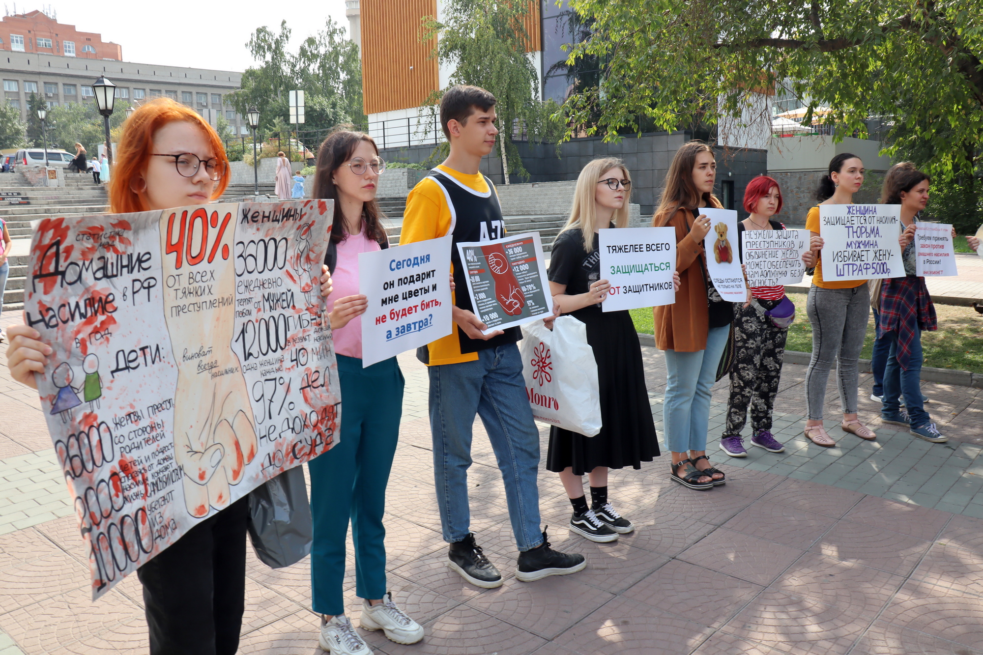 Более 40 человек приняли участие в пикете против домашнего насилия, который прошел в центре Новосибирска. Участники акции протеста требуют скорейшего принятия закона о профилактике семейного насилия, проект которого внесен в Государственную думу еще в 2016 году. Как сообщили корреспонденту "Сибирь.Реалии" гражданские активисты, подобные законы действуют в 140 странах мира. Россия, наряду с Афганистаном и рядом африканских государств, по данным Всемирного банка, входит в число 18 стран, чьи законы хуже всего защищают женщин от насилия в семье.