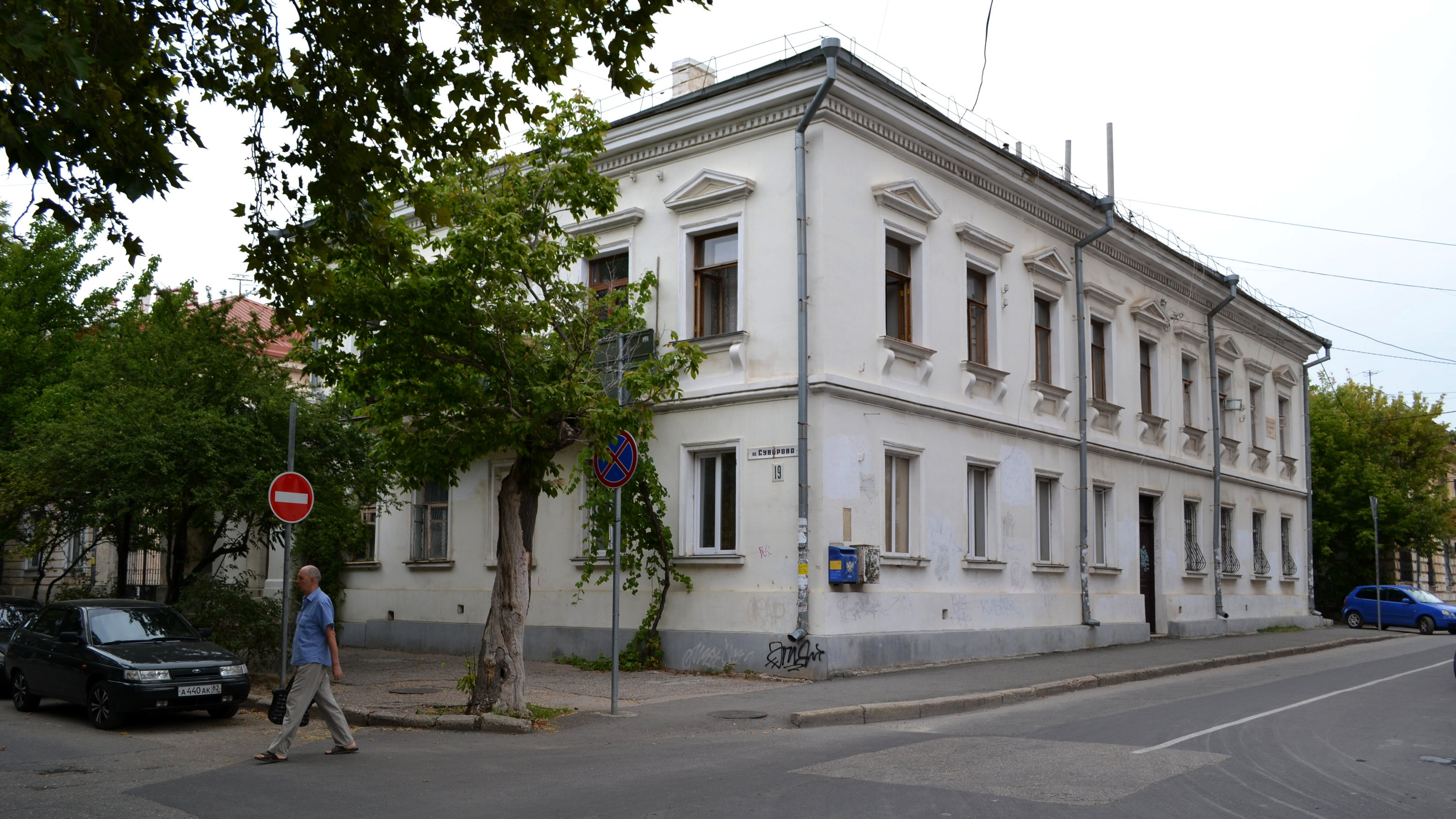По диагонали через перекресток от «дома Волохова» на Суворова, 20 – еще одно приметное здание, в котором когда-то была женская казенная гимназия. Построена в 1890 году. Улица Суворова в 19 веке называлась Соборной. К сожалению, в начале 2000-х дом также подвергся варварской реконструкции и в нем был размещен Севастопольский городской суд. Тем не менее, сейчас российские власти разместили на здании табличку, что это объект культурного наследия регионального значения.