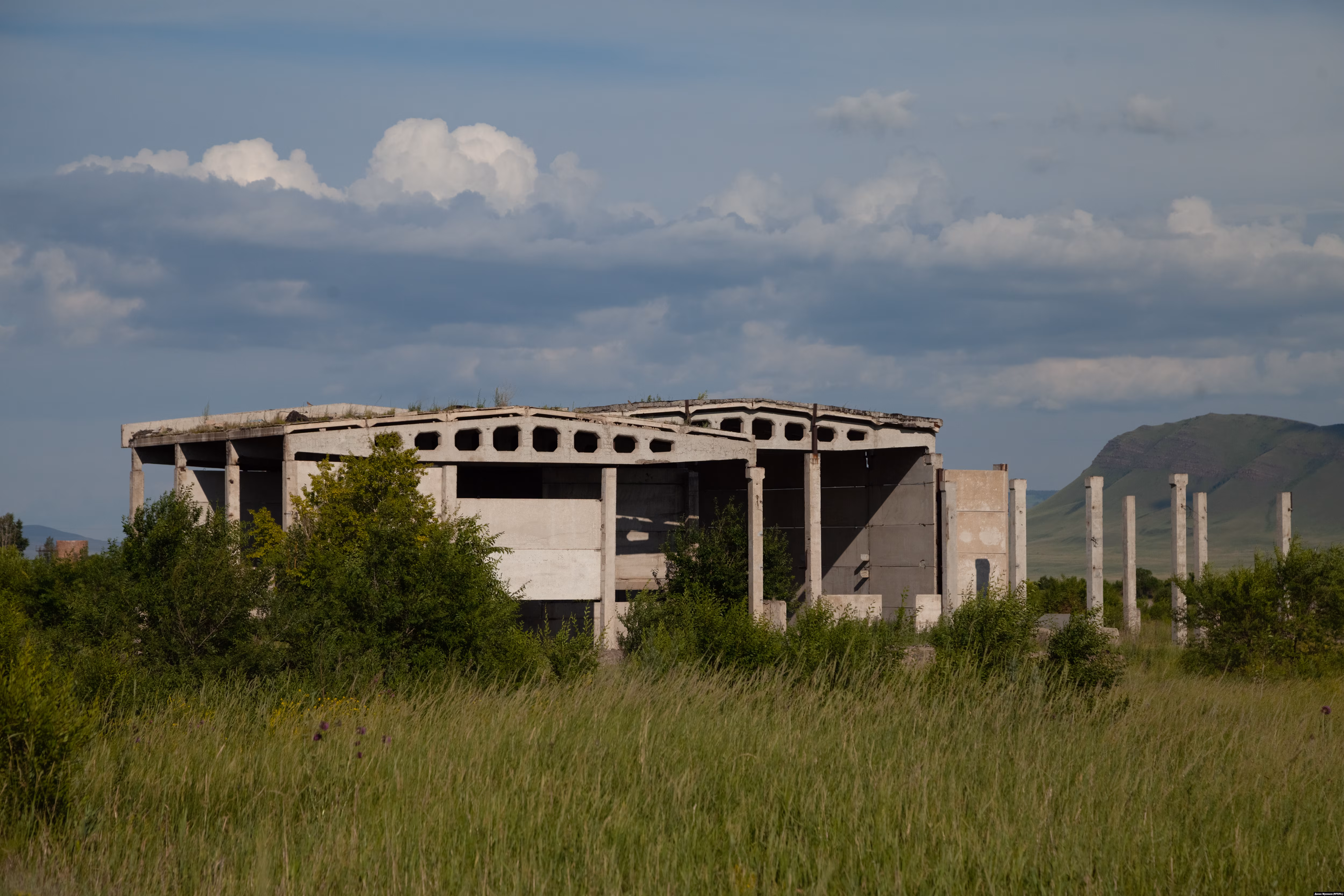С федеральной трассы Красноярск – Кызыл поселок Пригорск смотрится жутковато: несколько панельных многоэтажек посреди степи, рядом – несколько лагерей за колючей проволокой. Еще чуть в стороне – бетонные строения и труба котельной высотой с 12-этажный дом. Это промышленная площадка комбината "Сибирь", где хотели производить взрывчатку. Один из цехов расположен прямо в скале: это бетонный бункер, в котором планировали уничтожать отходы производства. Под каждым корпусом раньше было бомбоубежище, зайти в которое до последнего времени можно было совершенно свободно. Теперь один вход в катакомбы закрыт, а со стороны другого отчетливо пахнет луком.