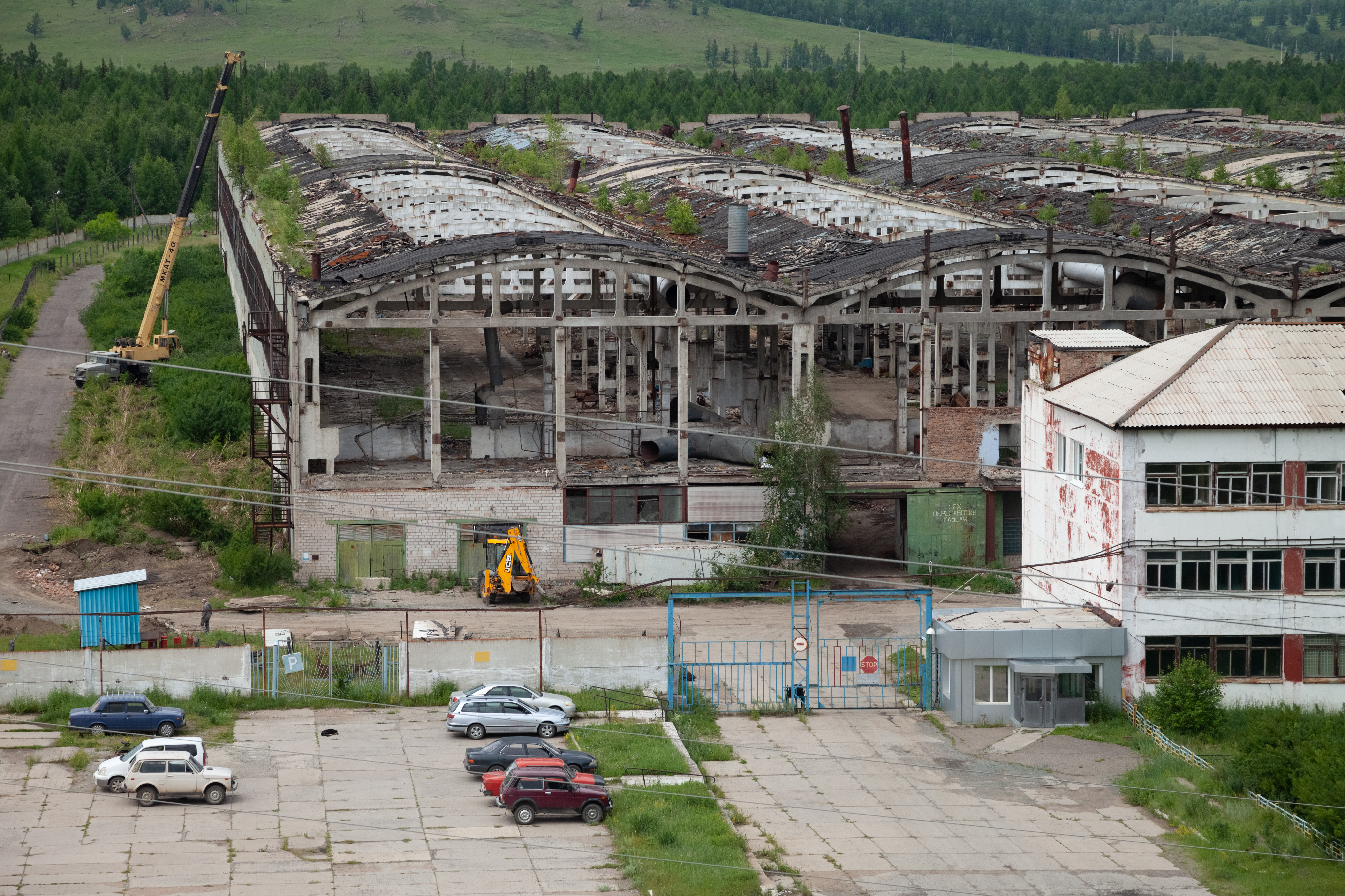 Если подняться на пригорок по другую сторону трассы, видно, как кран разбирает старые производственные корпуса. После разговоров с жителями Туима создается впечатление, что завод закрылся в середине 90-х. На самом деле, как говорит глава поселковой администрации Владимира Селютин, предприятие прекратило работу только в 2012 году. Селютин работал на ОМЦ сначала главным механиком, затем – коммерческим директором.