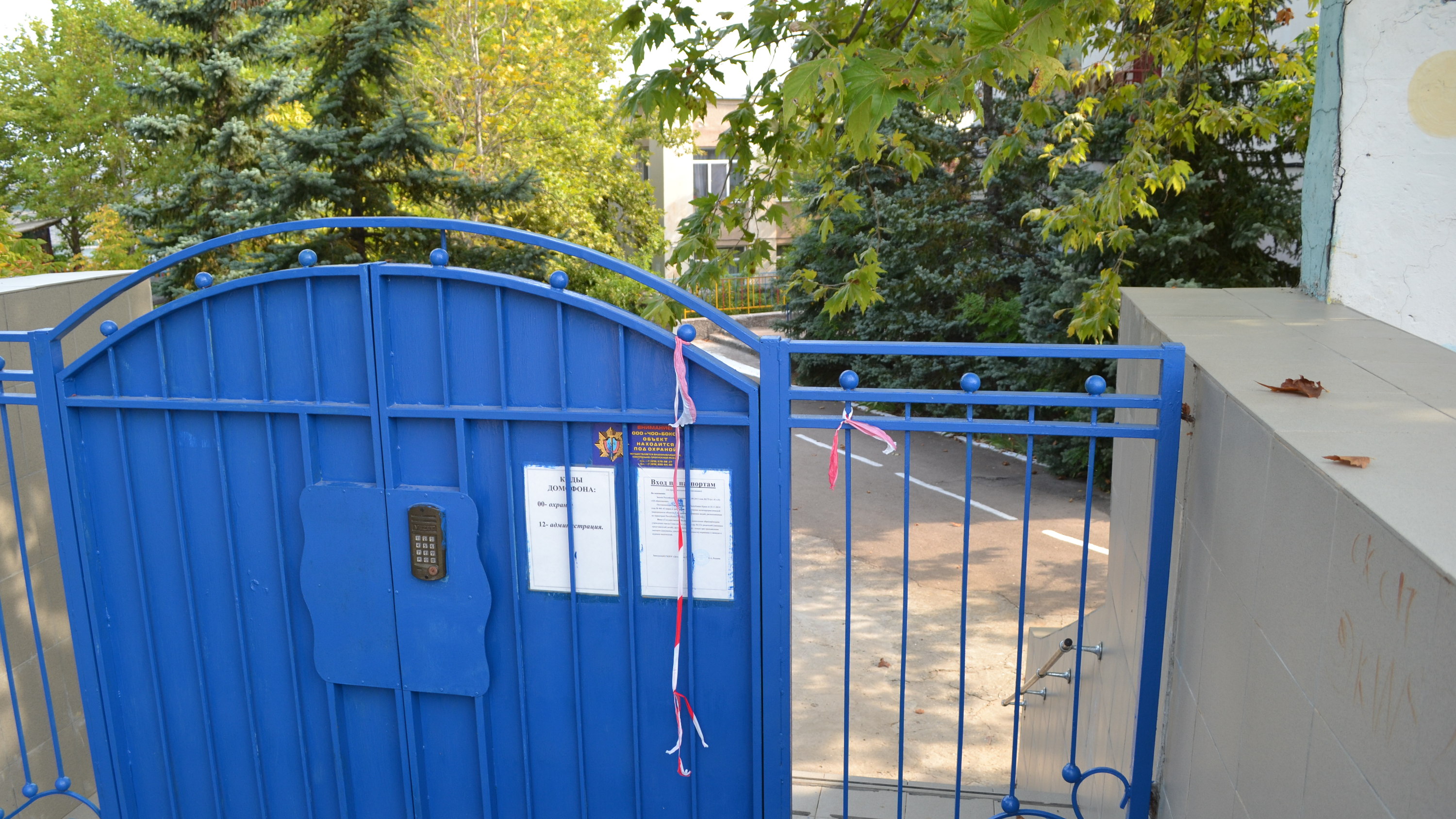 В детском саду тоже идет ремонт, а объявление на воротах напоминает, что вход на территорию только по паспортам. Интересно, как родители по утрам деток в сад приводят?
