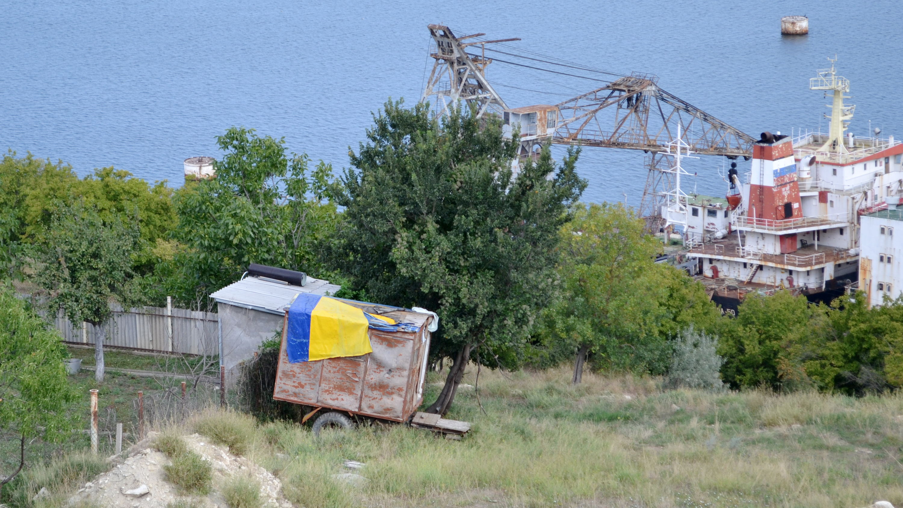 На обратном пути у дачного кооператива вижу на будке-прицепе украинский «флаг». Сейчас в Севастополе такое нигде не увидишь, но в здешней глуши это, похоже, никого не смущает.