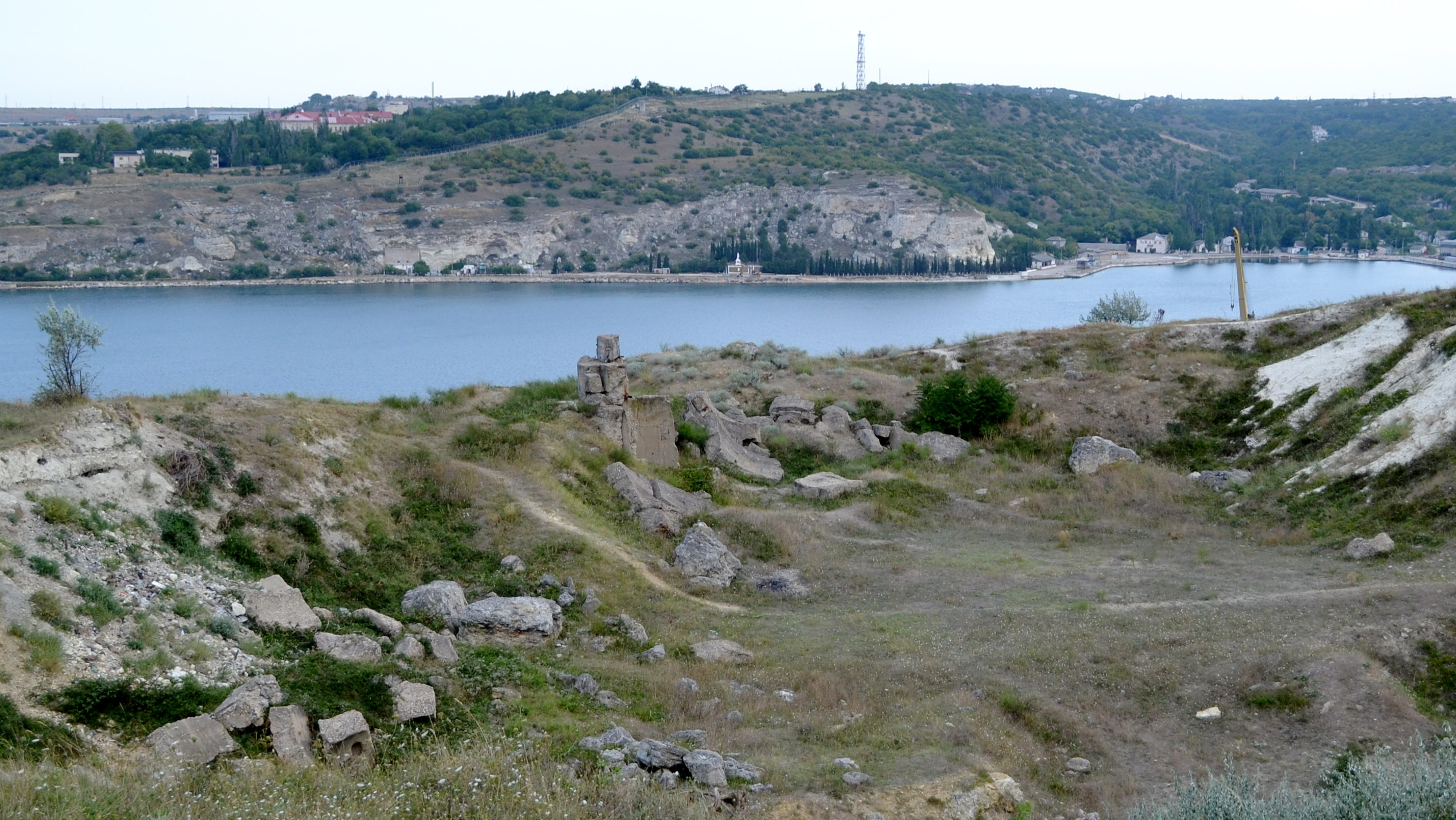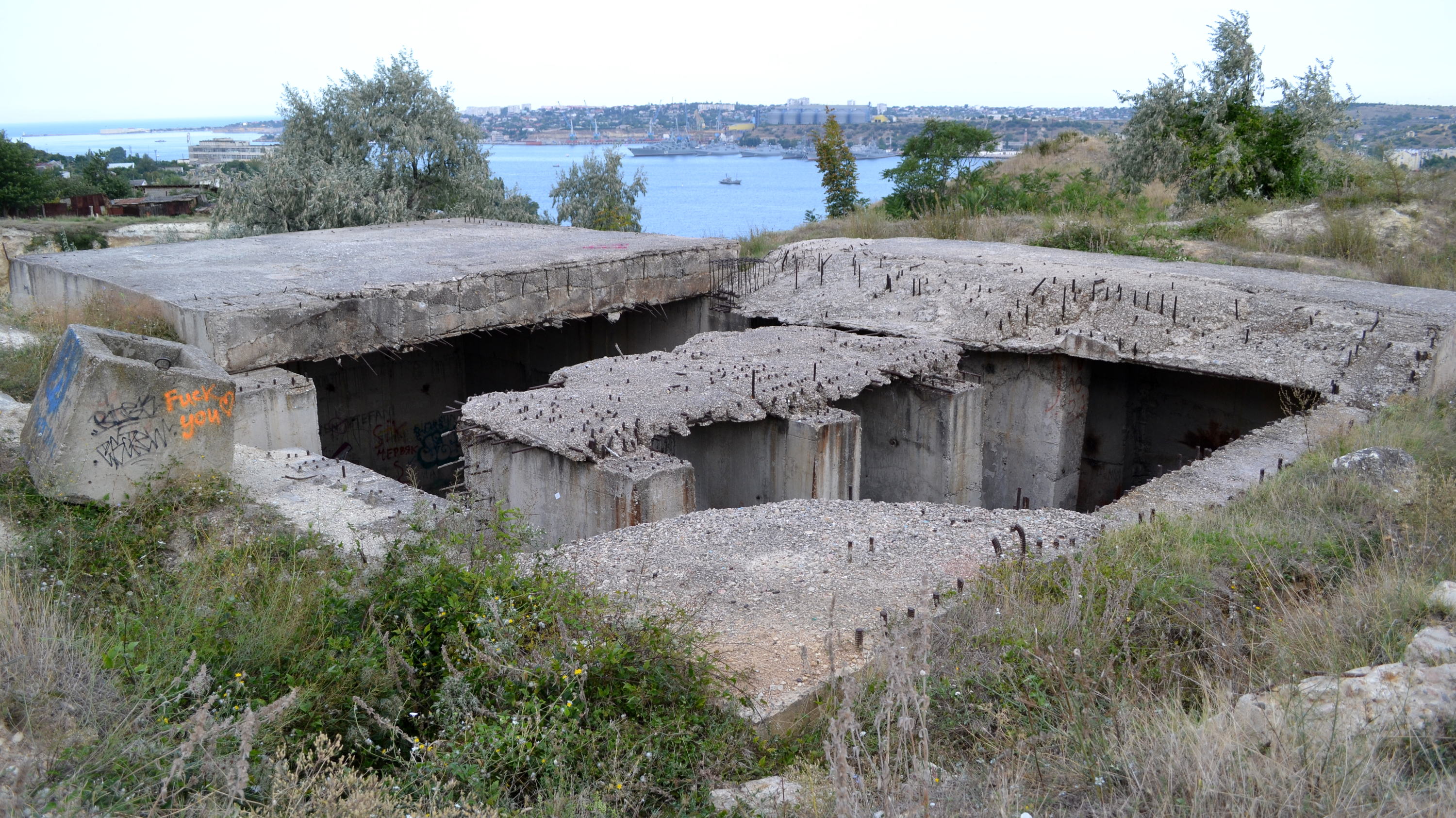 Спускаюсь в сторону Севастопольской бухты. По пути встречается огромный котлован и непонятные бетонные развалины, на вид довольно старые.