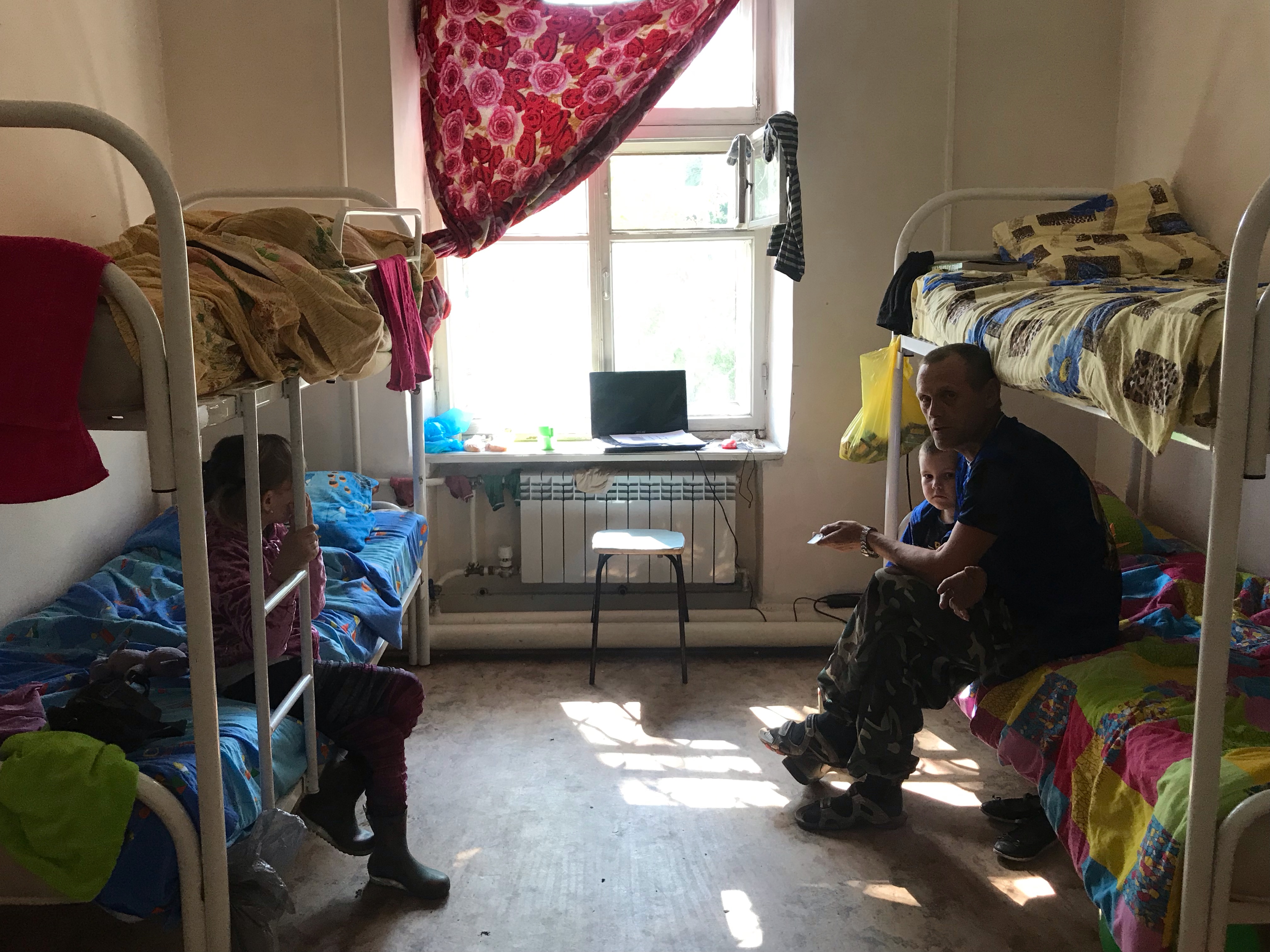 Комната три на два метра, на подоконнике – бутылка с водой и икона. Из спальных мест – одна кровать и свернутые матрасы.