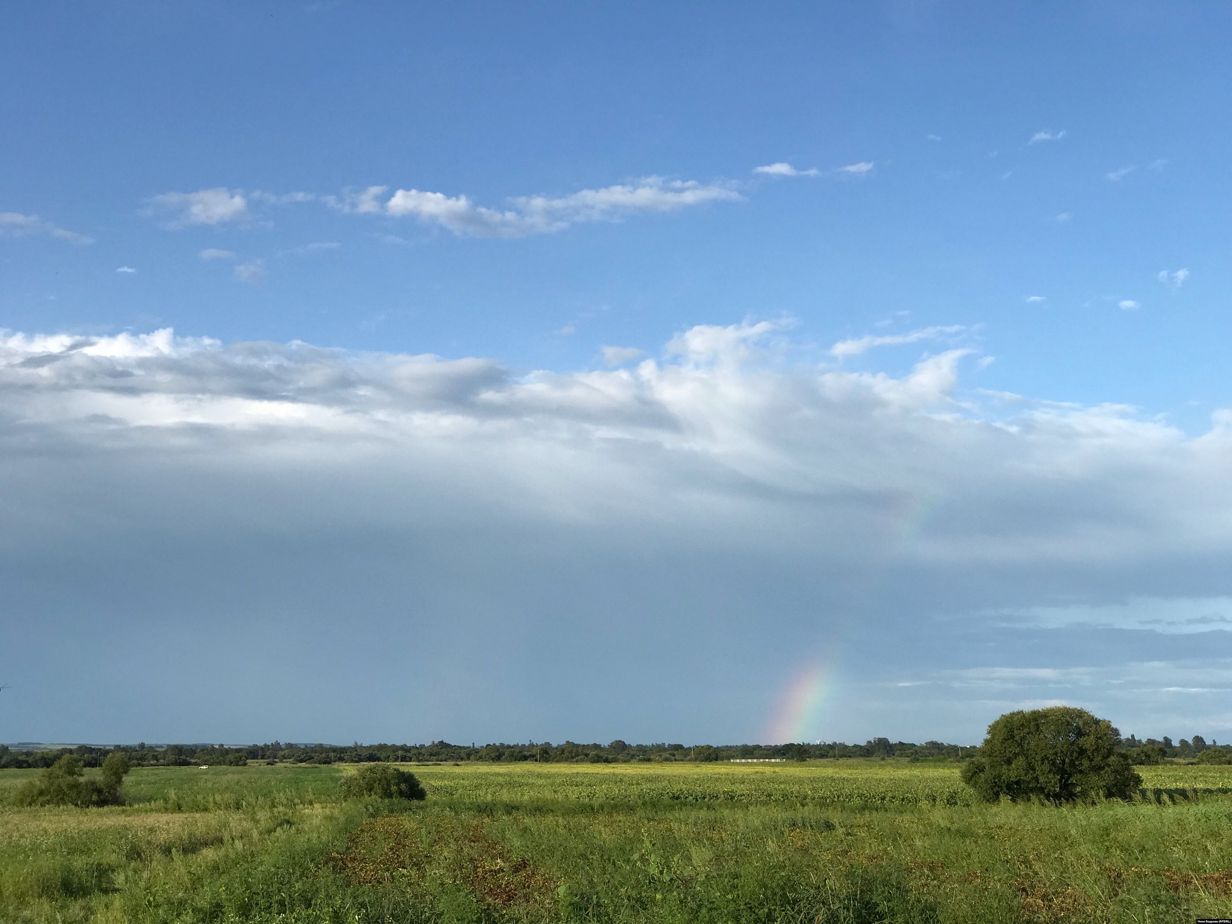 Сквозь тучи и мелкий дождь над селами Октябрьского района вдруг пробивается солнце и появляется радуга. Правда, уже через пару дней край снова ждут осадки. И даже объявлено штормовое предупреждение.