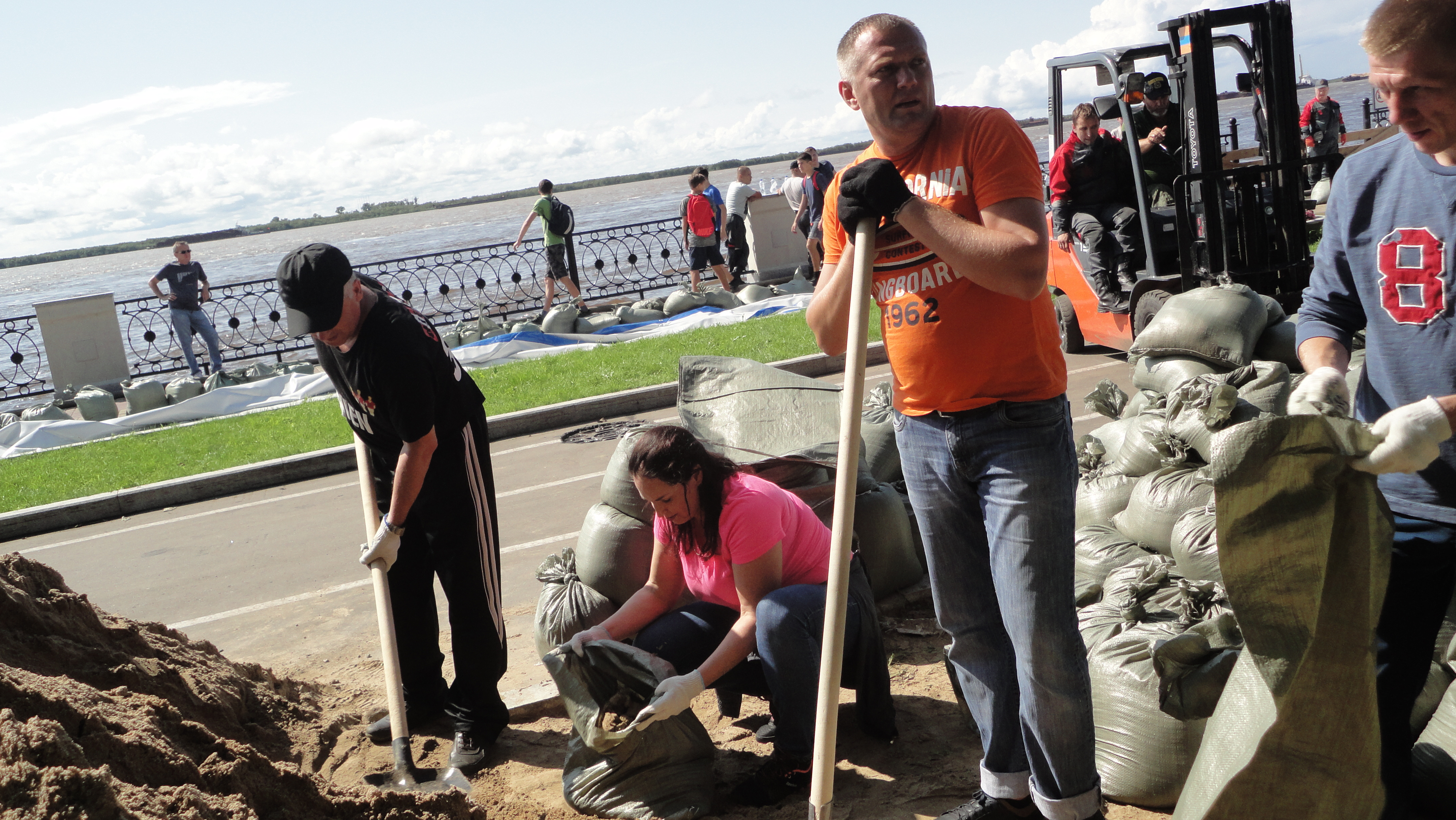 Губернатор Хабаровского края Сергей Фургал появился на набережной утром и под камеры государственного ТВ лично наполнил песком один мешок. Вслед за ним лопатами махали кандидаты в депутаты от различных партий. Но есть все-таки и обычные люди, которые искренне откликнулись на призыв защитить город от паводка.