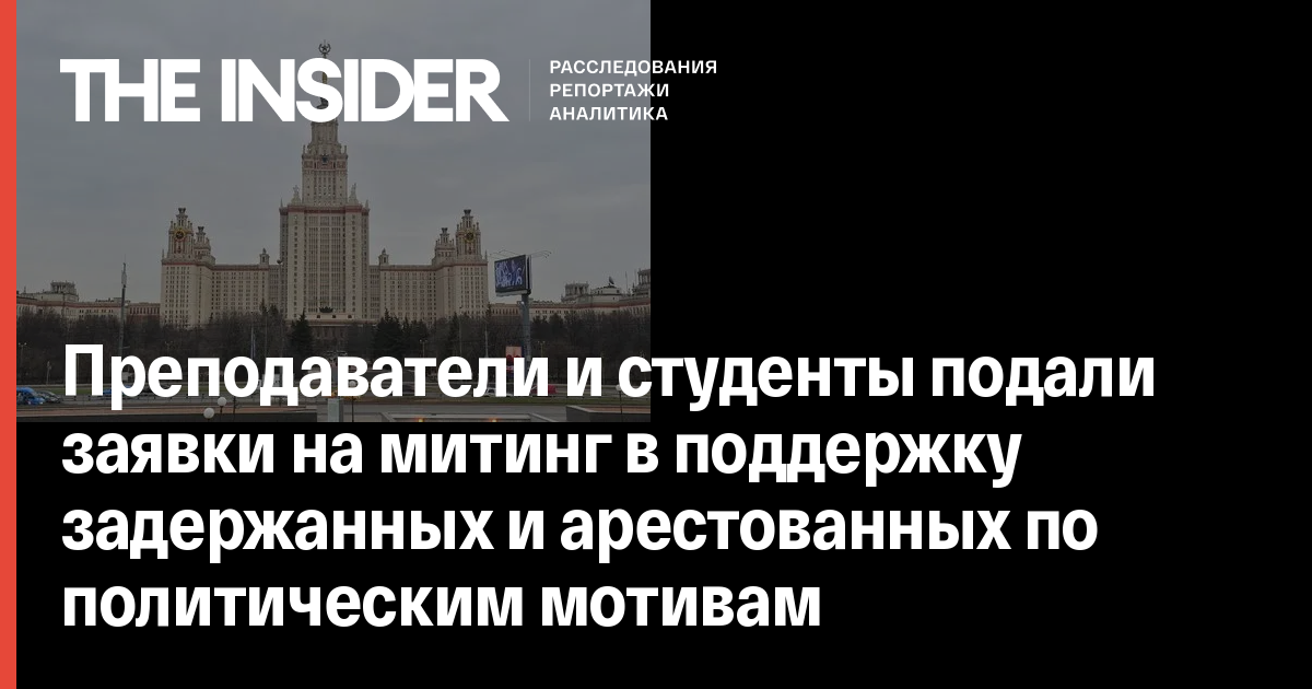 Преподаватели вузов, студенты и независимый журнал DOXA подали заявку в мэрию Москвы на проведение митинга «Свободу студентам, свободу университетам» в поддержку задержанных и арестованных по политическим мотивам студентов и аспирантов. Как передает «МБХ медиа», об этом сообщил один из заявителей — преподаватель факультета мехмата МГУ Михаил Лобанов.