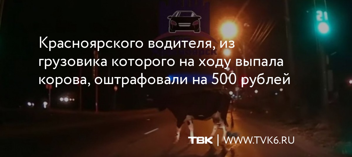 Ранее в сети заявили, что корова была украдена из Емельяновского района, однако водитель сумел доказать обратное, поскольку имел на руках свидетельство о покупке скота. Несмотря на это, ему придется заплатить штраф в 500 руб. за нарушение правил перевозки грузов.