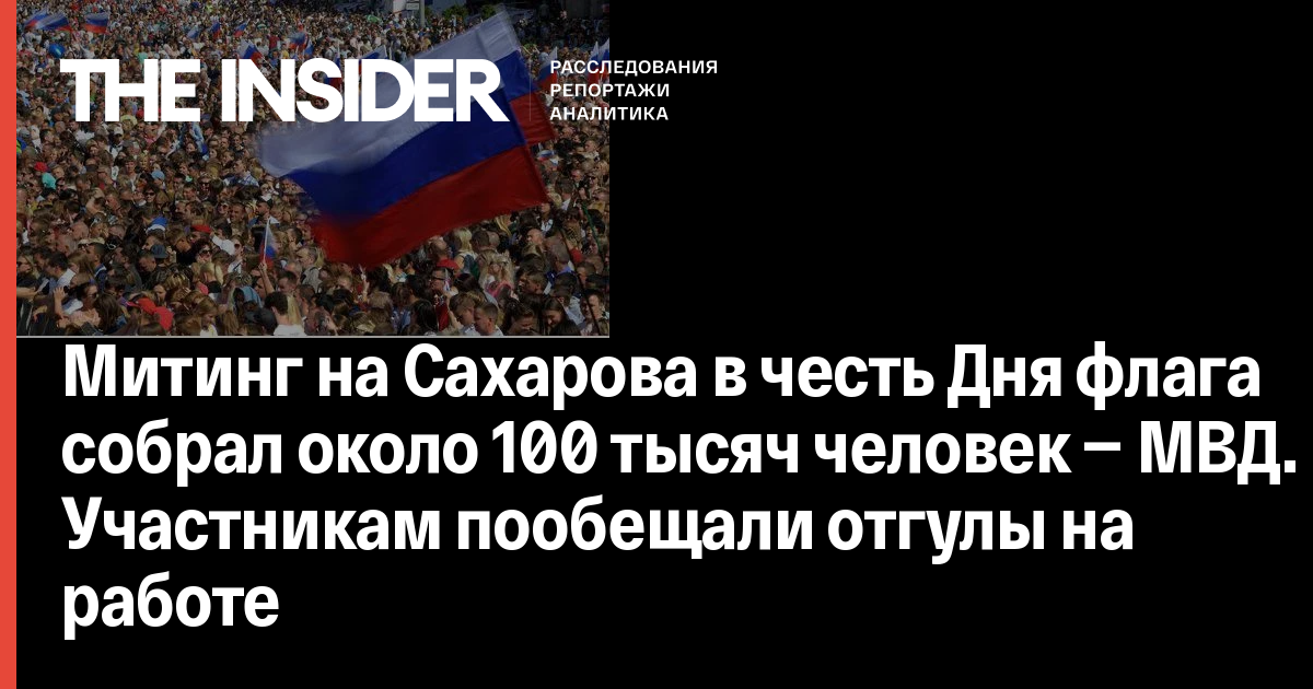 Митинг на Сахарова в честь Дня флага собрал около 100 тысяч человек — МВД. Участникам пообещали отгулы на работе
