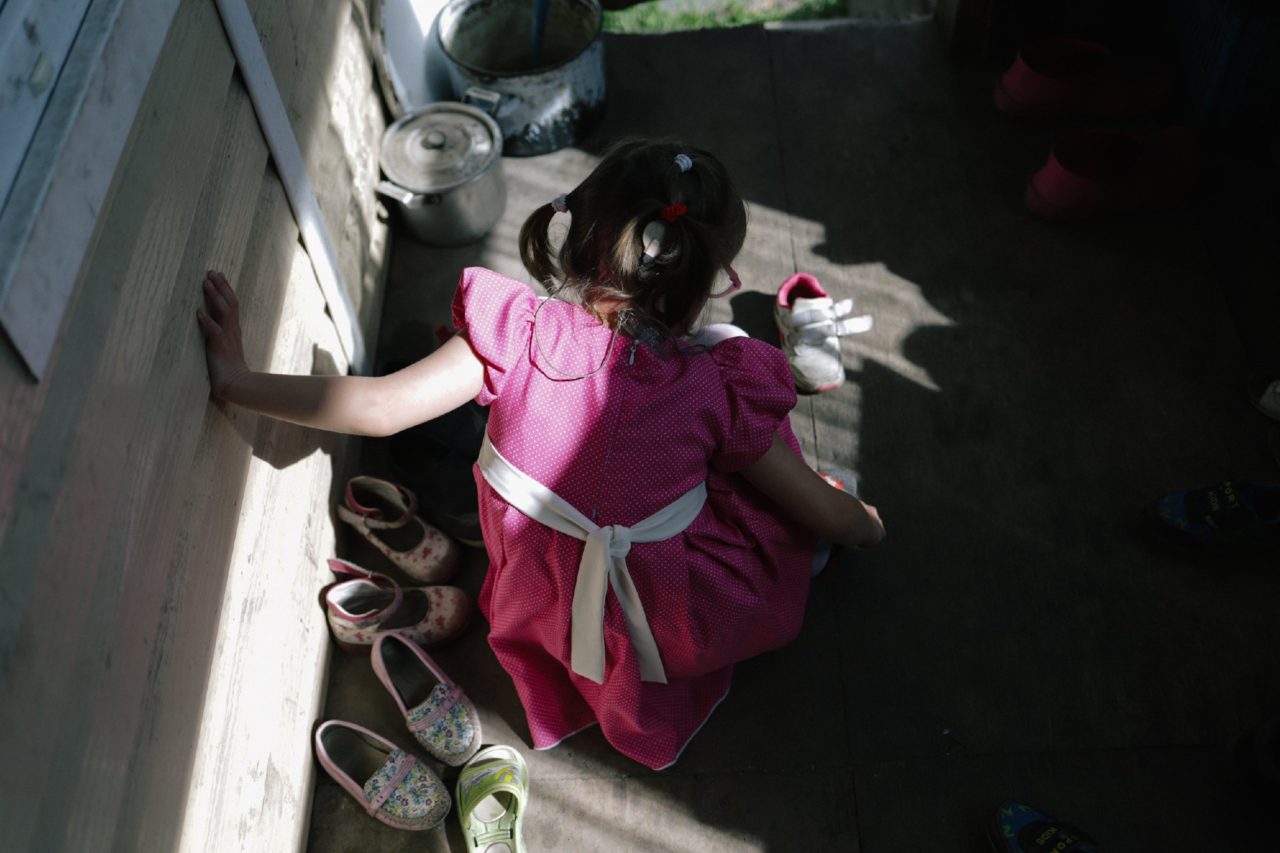 Олеся играет на улице возле домаФото: Мария Гельман/ VII Photo Agency для ТД Возить надо всех и везде. Особенно часто — в больницы. У всех детей имеются проблемы со здоровьем, многие голодали в раннем детстве. Бесконечные обследования, справки, поездки в Петербург в областную больницу, в санатории. В машину вся семья, конечно, не помещается. Ездят «партиями».