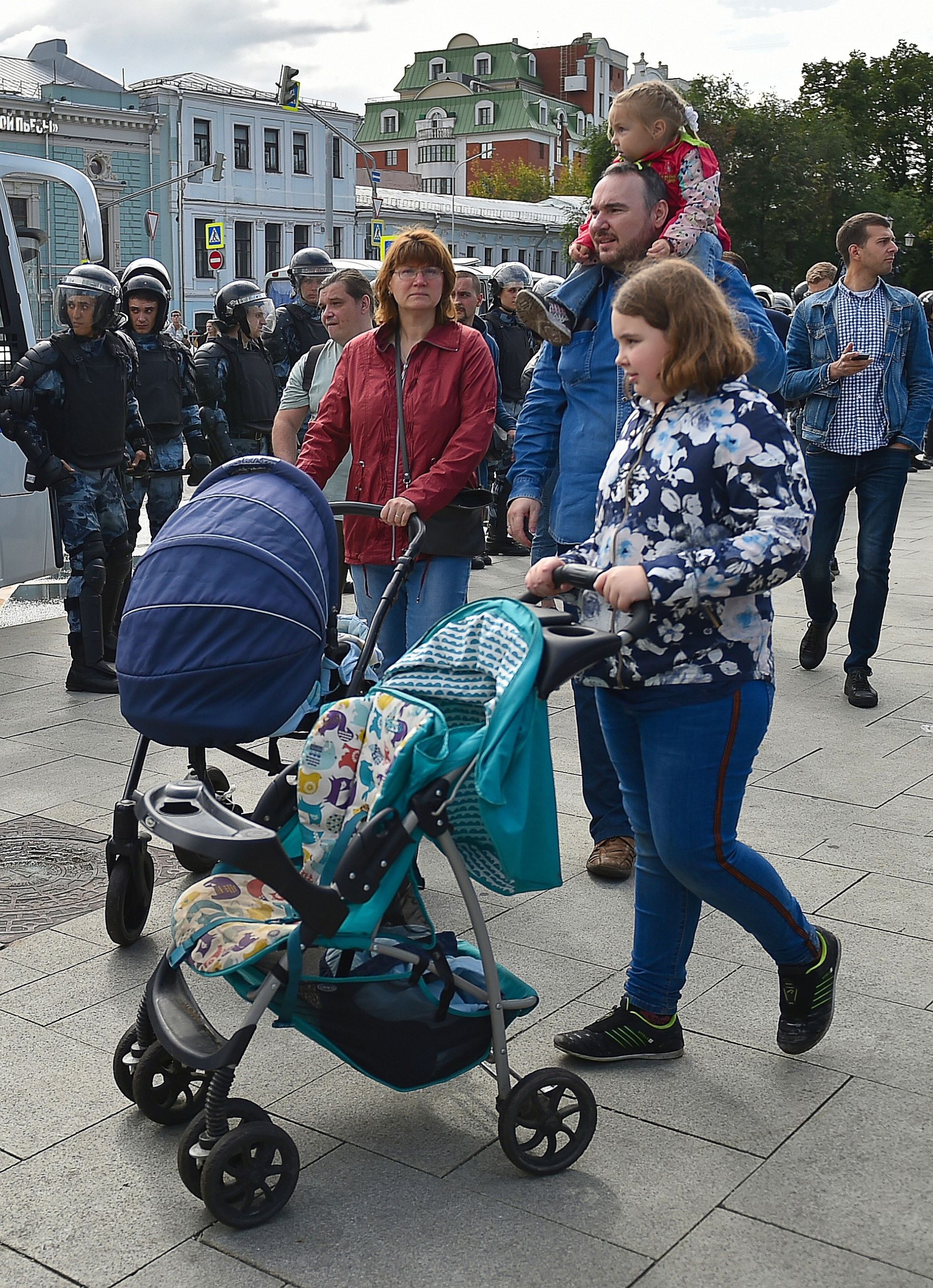Мы перешли через подземный переход, выбрались из него и ровно в этот момент Росгвардии, видимо, поступила команда вытеснять [протестующих] — пошла «цепь» [из сотрудников]. «Цепь» прогнулась, давая возможность нам с колясками пройти. Мы торопились, у колясок запутались колеса, но в итоге мы прошли. Этот момент был заснят множеством камер. Была такая картиночка — Росгвардия немножечко расступилась и дала нам выбраться.