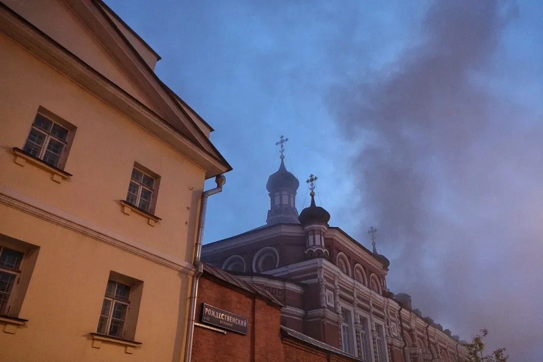 В центре Москвы загорелась кровля здания Богородице-Рождественского монастыря