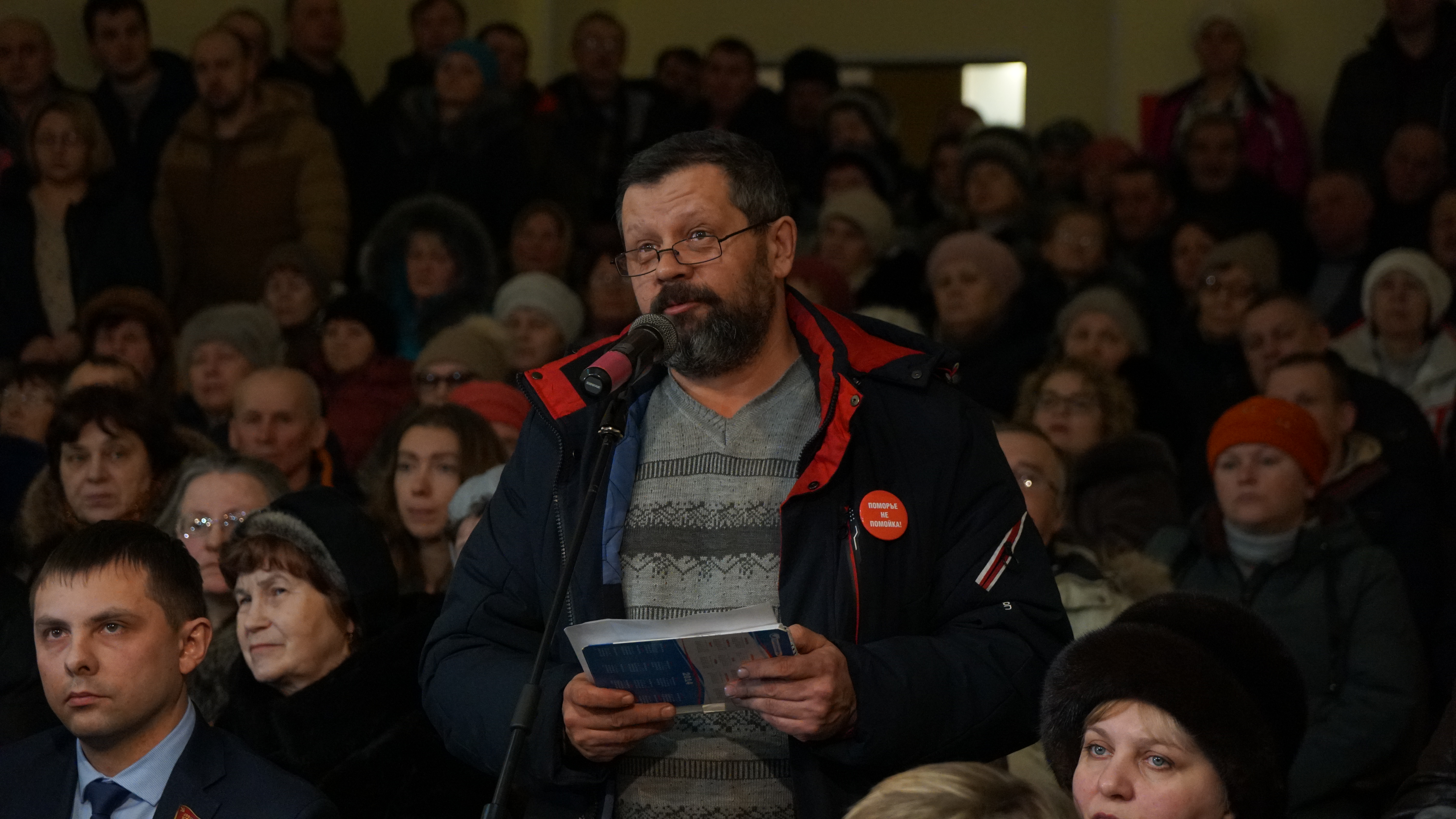 Выступить перед комиссией и земляками хочет чуть ли не половина зала, у микрофонов то и дело сменяются люди, они перечисляют проблемы, связанные со строительством полигона, и свои претензии к власти: "осушение почв в Шиесе может привести к пожару на торфяниках и взрыву газопровода в 800 метрах от полигона"; "власть постоянно что-то нарушает, как будто провоцирует людей, чтобы потом была возможность применить к ним самые жесткие методы воздействия"; "губернатор Игорь Орлов ведет войну против народа Архангельской области"; "прогнозируется значительный отток населения с Севера"; "мы живем в состоянии постоянного стресса"; "люди настроили домов и набрали ипотек, им некуда деваться"; "дети уедут и не захотят вернуться на "полигон смерти".