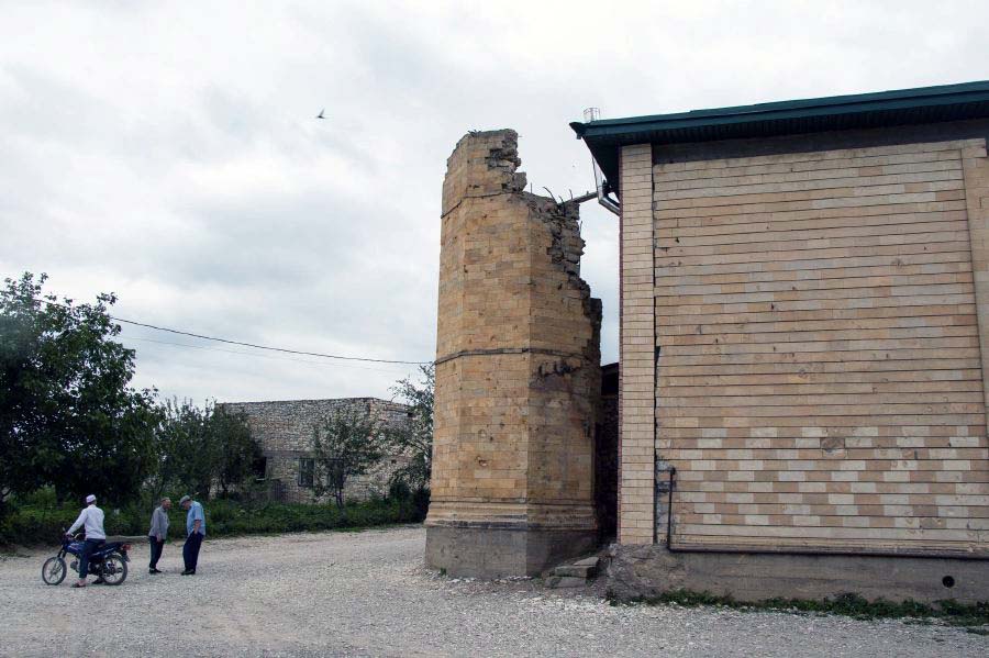 Когда встал вопрос, какую мечеть ремонтировать, решили, что «ваххабитскую»: дыры в стенах заделали, часть из них облицевали новым камнем, а вот от минарета так и торчит одно основание.