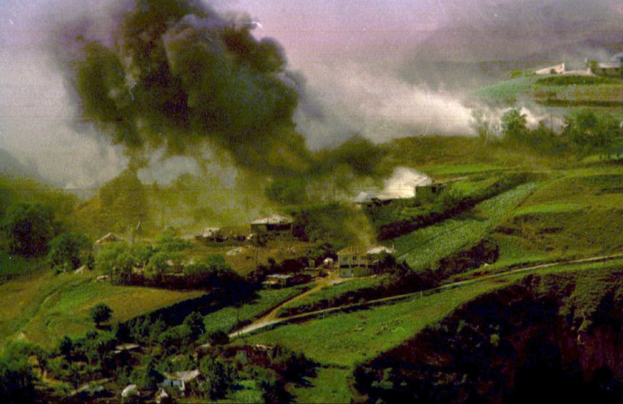 По слухам, говорит он, боевики оставили в селах небольшой отряд, большинство ушло в Чечню. «Но боевики бешено отражали [штурм]. А там и авиацией бомбили, и дороги в селе установками [разминирования] почистили, и градом. Даже вакуумные бомбы хотели закинуть туда. Много разных военных было, местные и федеральные», — говорит он.