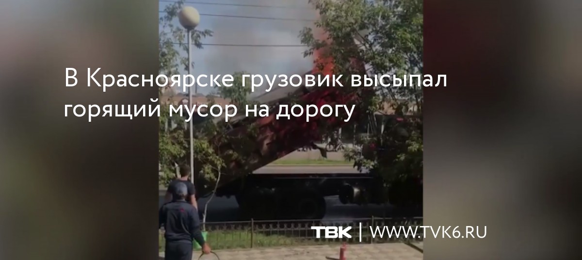 В Красноярске грузовик высыпал горящий мусор на дорогу