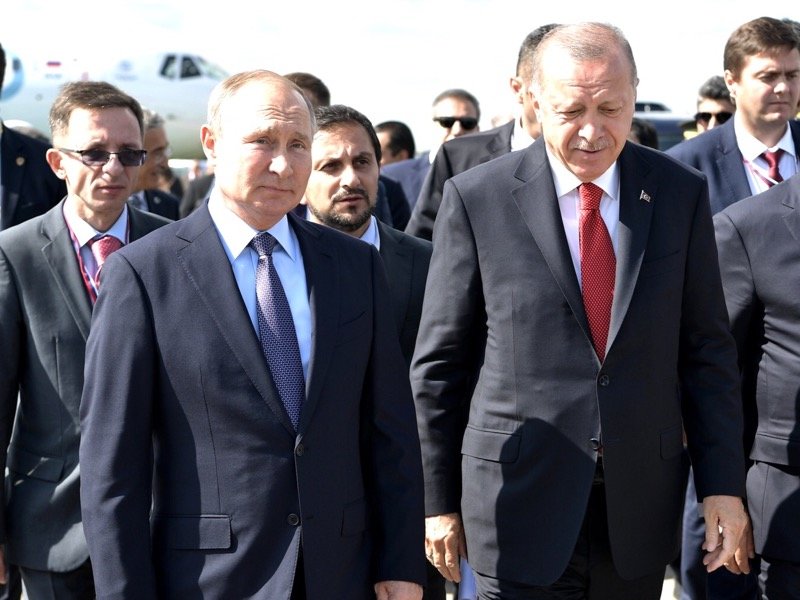 "Как нам с гордостью сообщали все последние дни, президент (который был на салоне в основном в обществе Эрдогана) все время усиленно обрабатывал турецкого предводителя на предмет продать ему российский новейший истребитель Су-57. По-простому - "втюхать". Эрдоган, насколько можно понять, не спешил радоваться такому счастью и пока так и не сказал ни да, ни нет. Возможно, как опытный переговорщик, он не торопится явно обозначать свой интерес, чтобы максимально сбить цену. А Путин напирает, плюс таскает с собой весь выводок "авиационных" министров - чтобы, значит, они тоже давили на Эрдогана и нахваливали наше "изделие", - пишет социальный психолог в "Живом журнале".