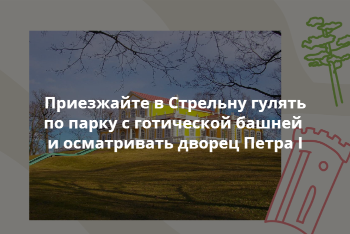 С начала XVIII века в Стрельне жили цари и великие князья Российской империи. С тех пор здесь сохранился Путевой дворец Петра I — в нем работает музей. Сейчас в поселке также расположена резиденция президента — туда водят экскурсии. В Стрельне есть парк с готической башней и старинная речная плотина.