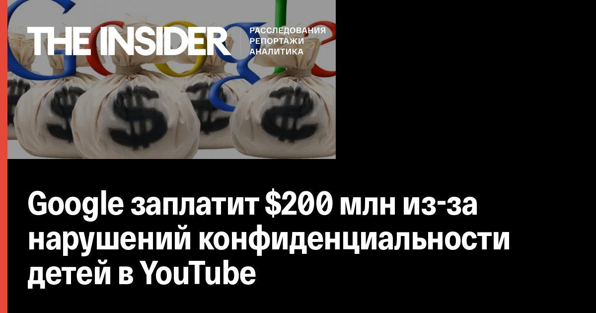 Компания Google согласилась заплатить штраф в размере $200 млн властям США в связи с расследованием предполагаемых нарушений конфиденциальности детей на видео-платформе YouTube. Об этом сообщает The Wall Street Journal со ссылкой на источники, знакомые с этим вопросом.