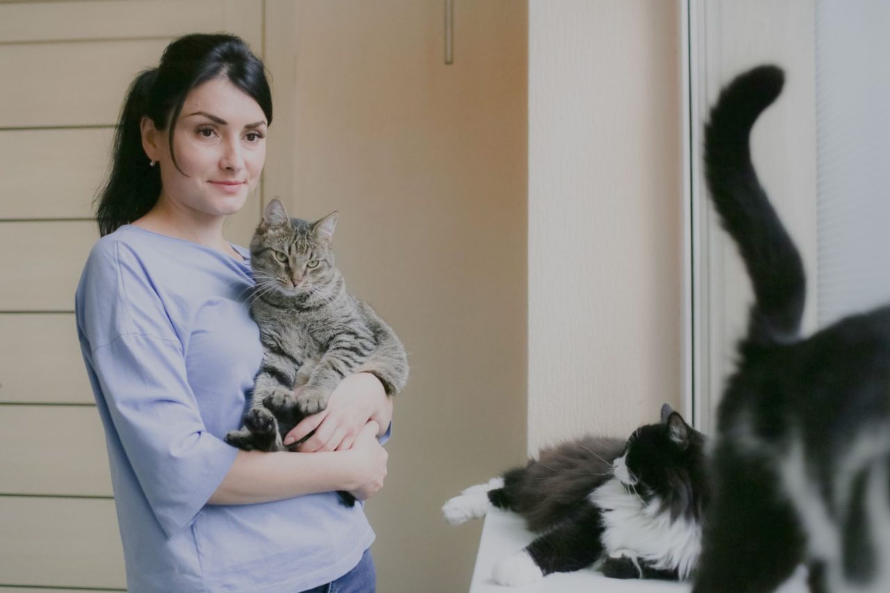 Ксюша живет в Трехгорке — это ближайшее Подмосковье, в маленькой студии с мужем Сергеем, собакой и тремя котами. Ей 32 года, она работает в рекламе и содержит в соседнем доме мини-приют, где сейчас живут 26 кошек. Ксюша называет его гостиницей, но при этом только один кот живет здесь, пока ждет хозяев из отпуска. Еще шесть — кураторские, то есть живут тут на передержке за деньги. Остальные — собственные коты Ксюши: их она выходила, вылечила и забрала с собой — привезла через несколько стран, надеясь найти им новых хозяев.